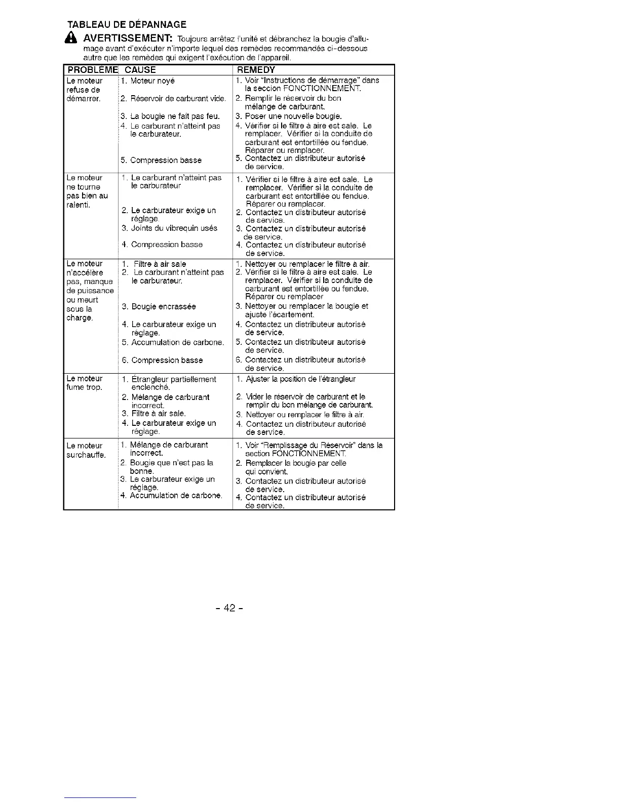 AVERTISSEMENT: Toujours arretez Funite etdebranchez la bougie d'allu-