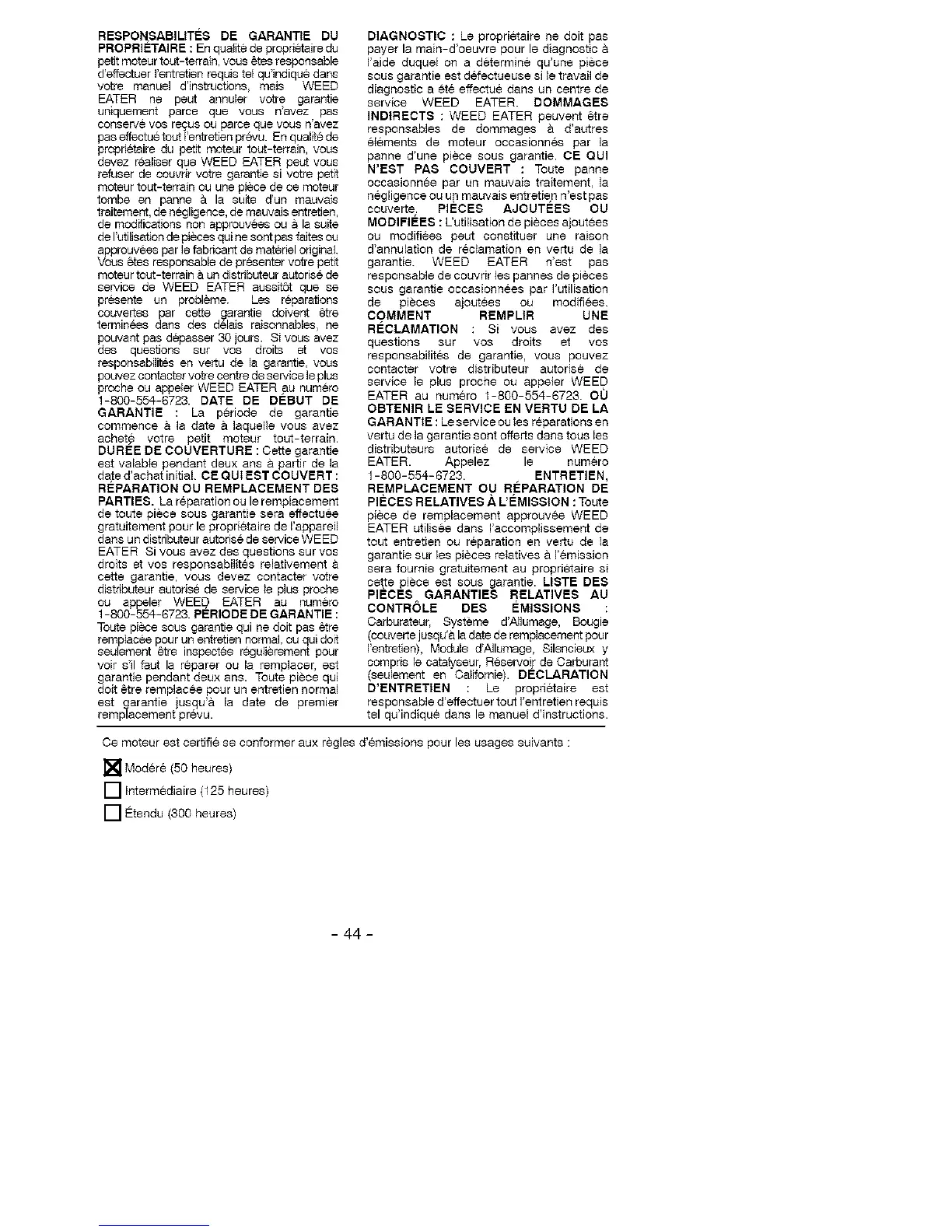 Ce moteur est certifie se conformer aux regles d'emissions pour les usages suivants :