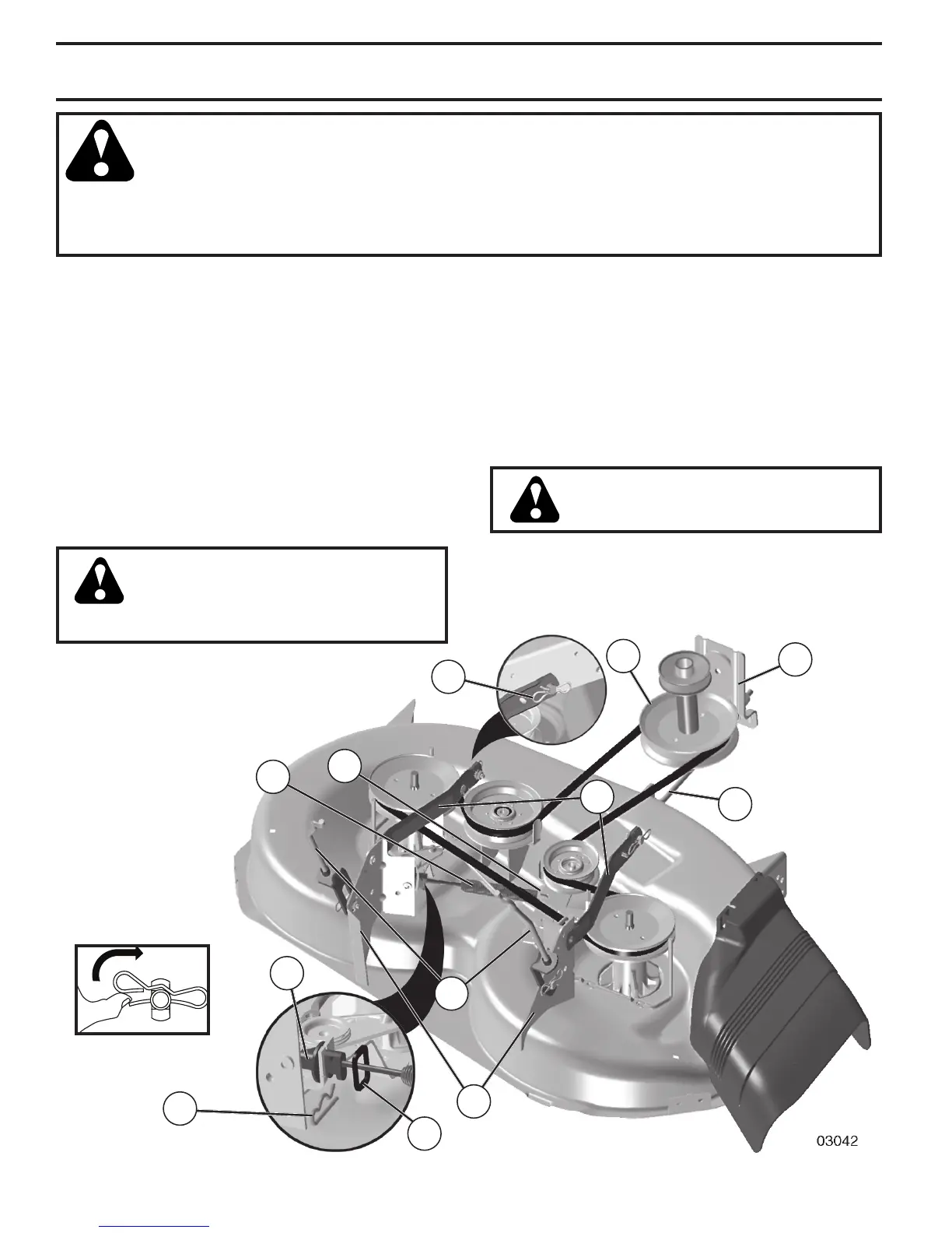 • Go to other side of mower and disconnect the suspen-