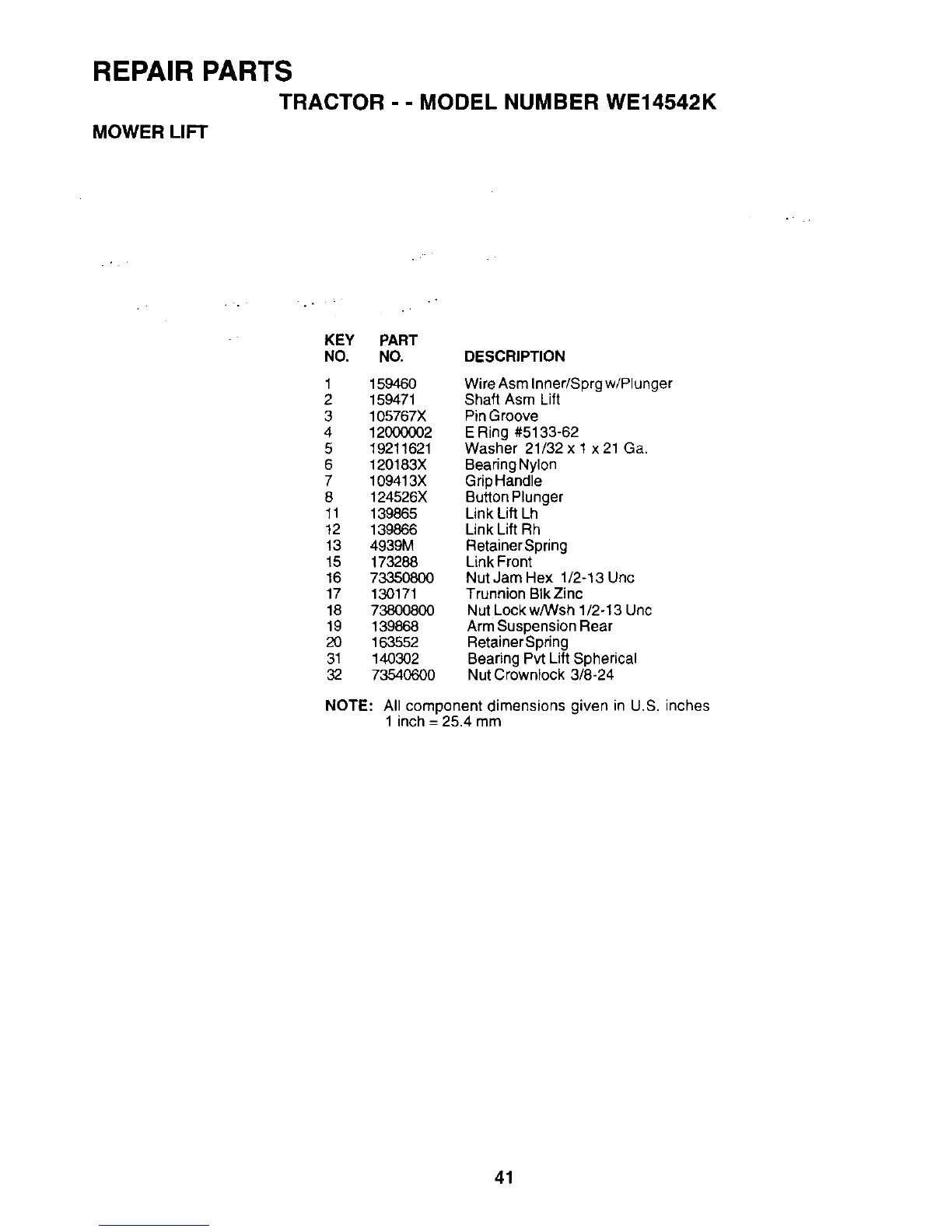 TRACTOR -- MODEL NUMBER WE14542K