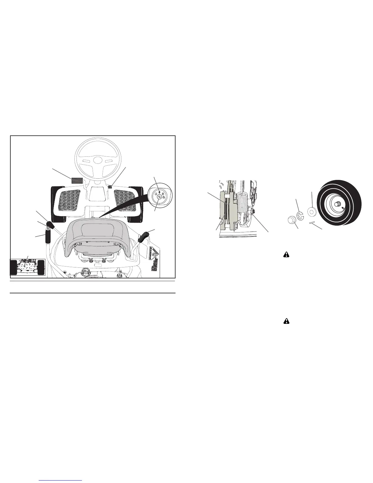 Comparez les illustrations avec votre tondeuse autoportée afin de connaître l'emplacement