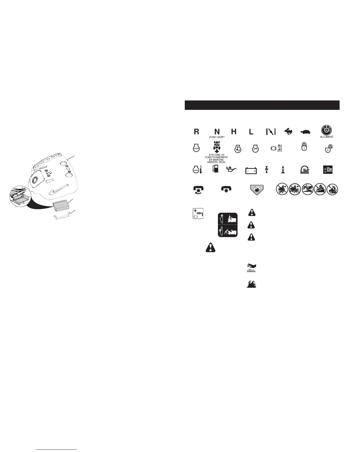 Ces symboles peuvent apparaître sur la tondeuse autoporteuse ou sur la documentation