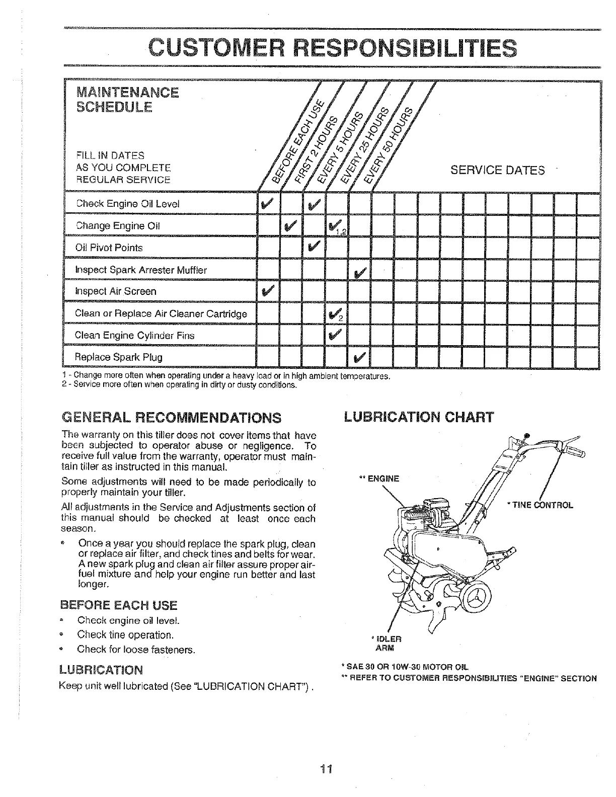 Weed Eater WEF550B - Customer Responsibilities; General Recommendations; Lubrication Chart