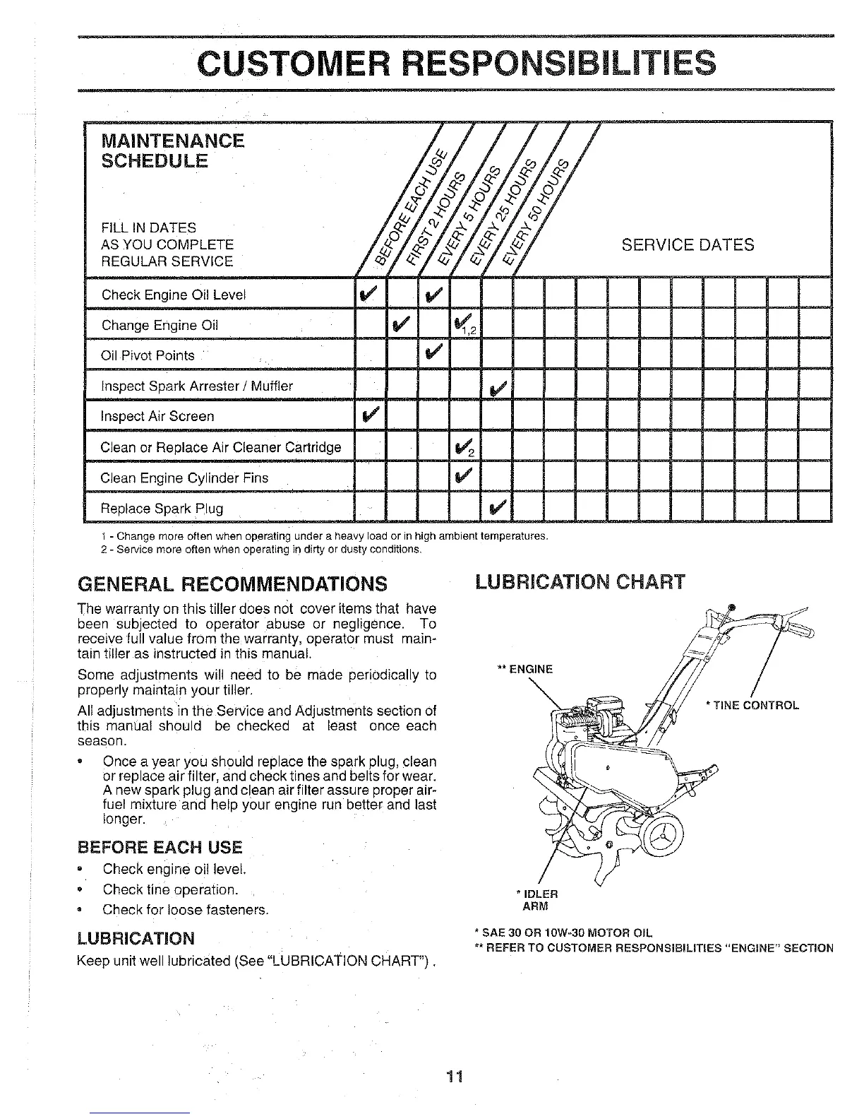 Weed Eater WEF550D - CUSTOMER RESPONSIBILITIES; Maintenance Schedule and General Recommendations