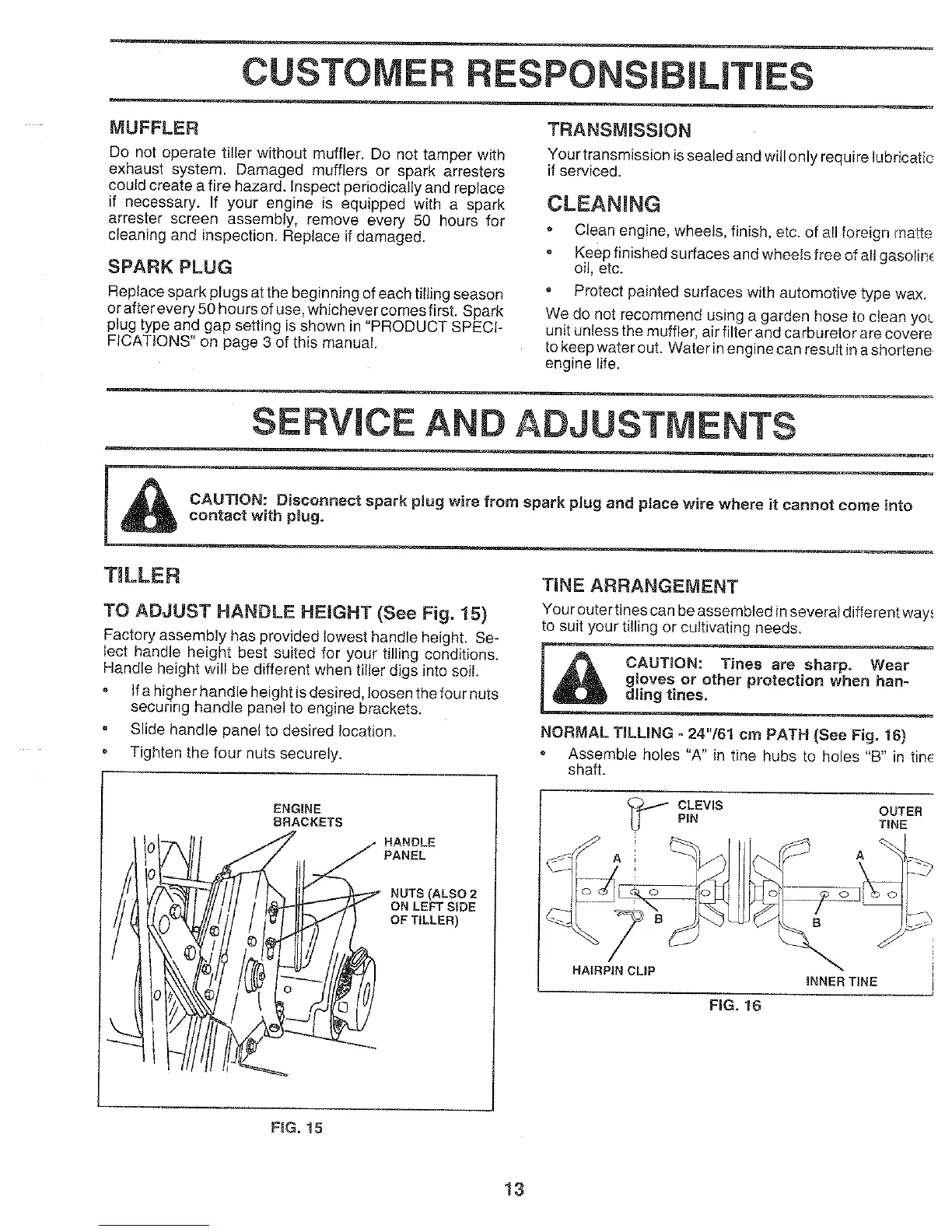 Weed Eater WEF550D - SERVICE AND ADJUSTMENTS; Handle Height and Tine Configuration