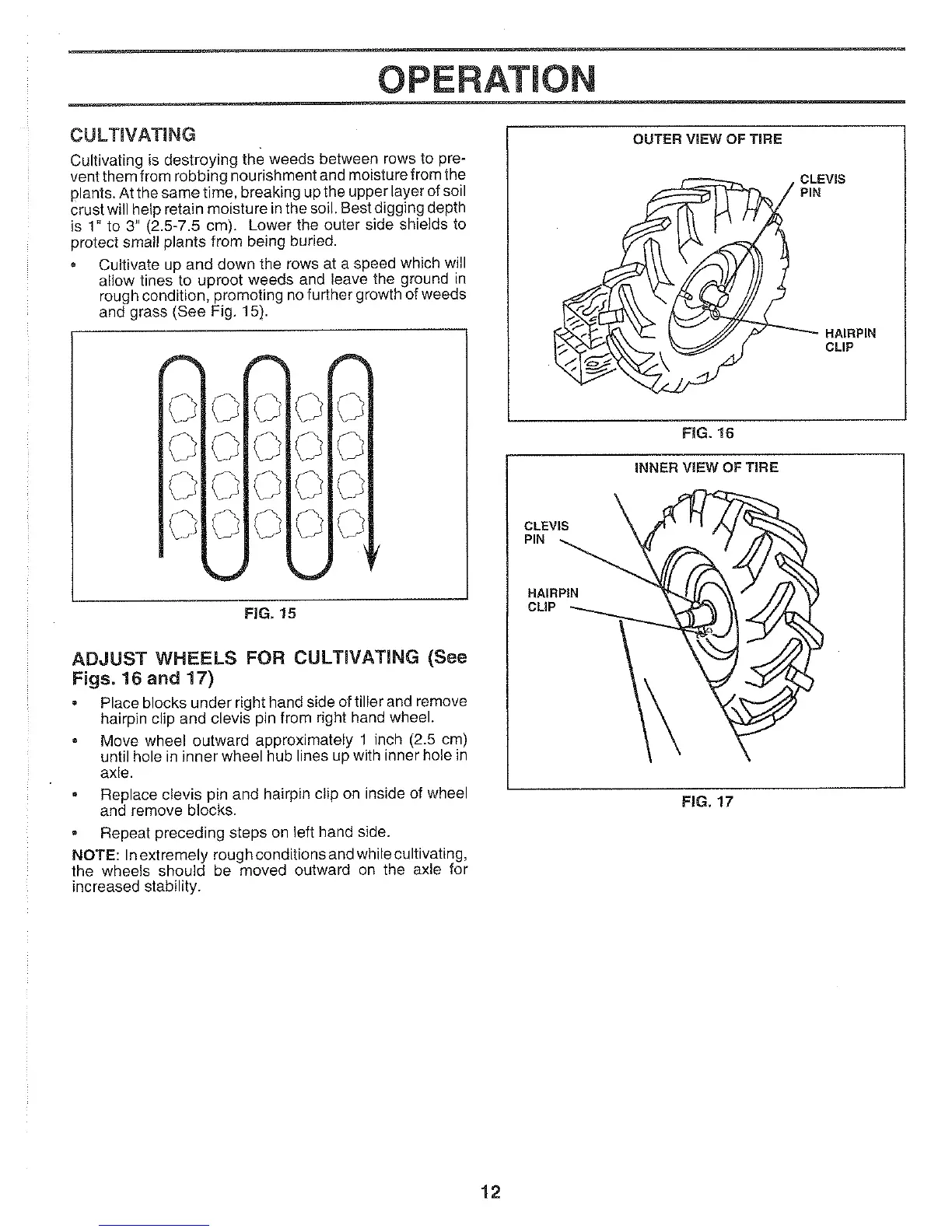 Weed Eater WER500D - CULTIVATING; ADJUST WHEELS FOR CULTIVATING