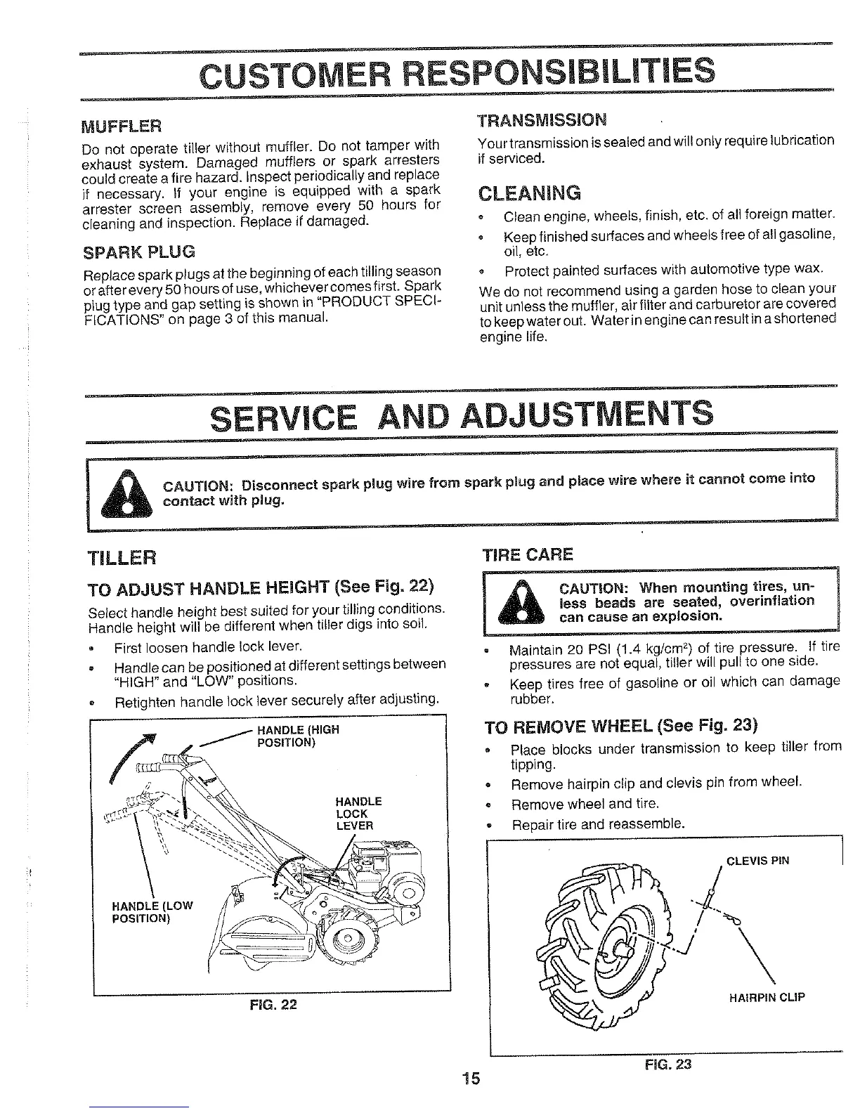 Weed Eater WER500D - SERVICE AND ADJUSTMENTS; TO ADJUST HANDLE HEIGHT; TIRE CARE