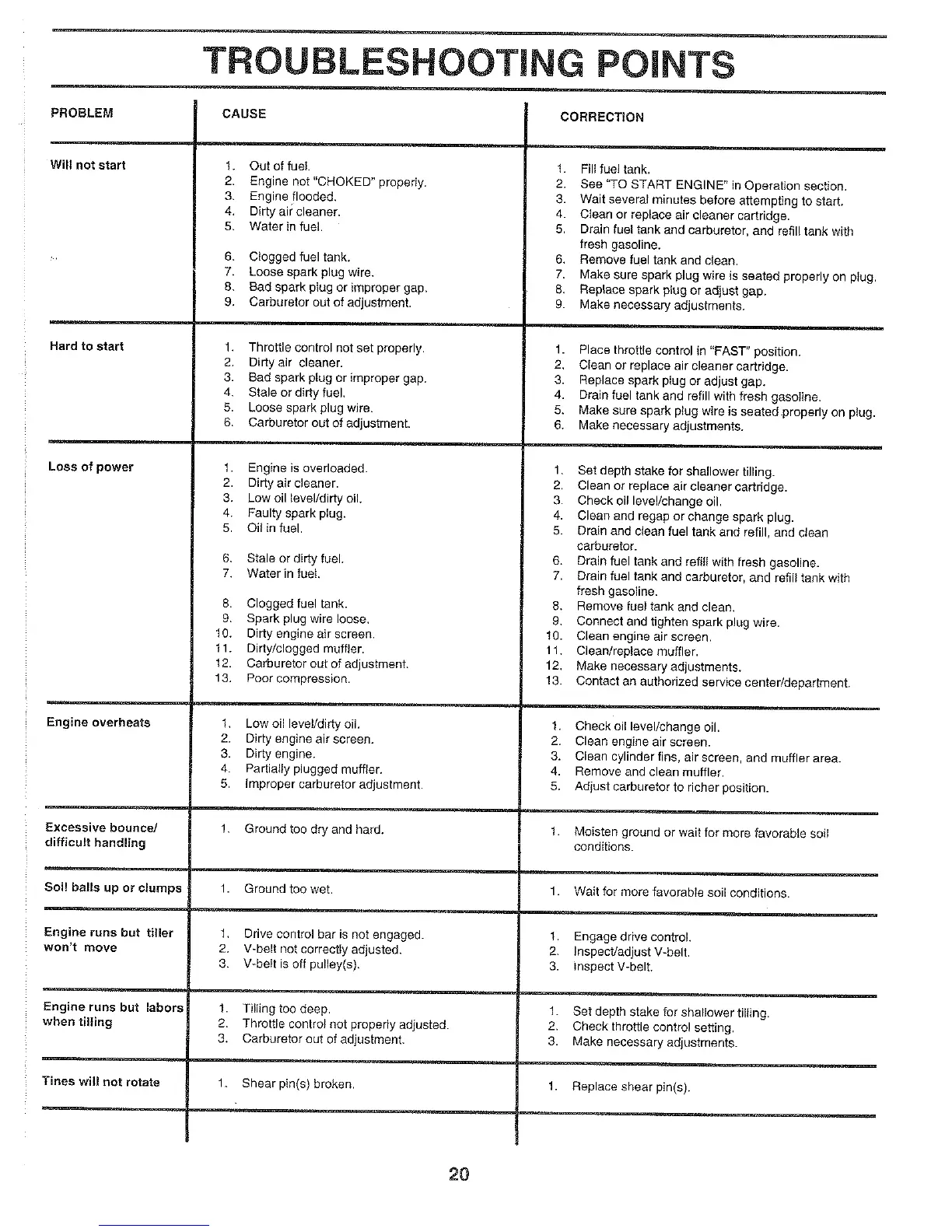 Weed Eater WER500D - TROUBLESHOOTING POINTS