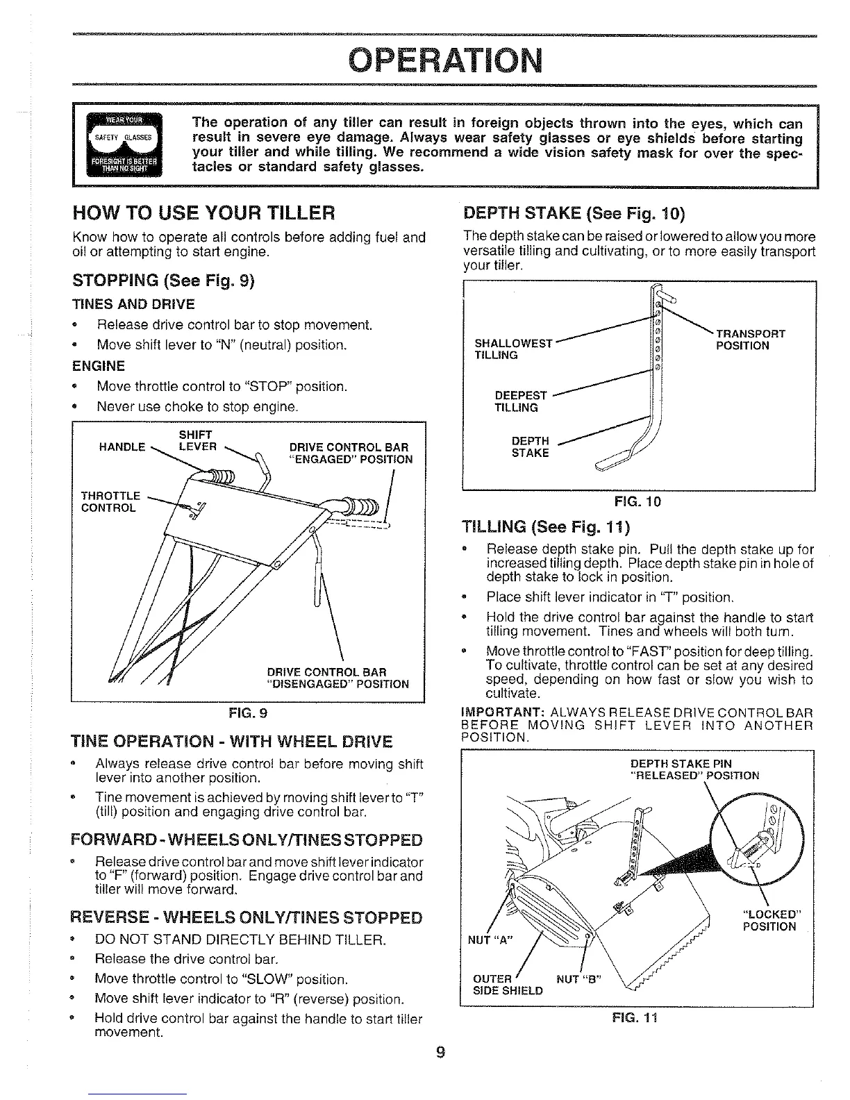 Weed Eater WER500D - HOW TO USE YOUR TILLER; STOPPING; TILLING; TINE OPERATION - WITH WHEEL DRIVE