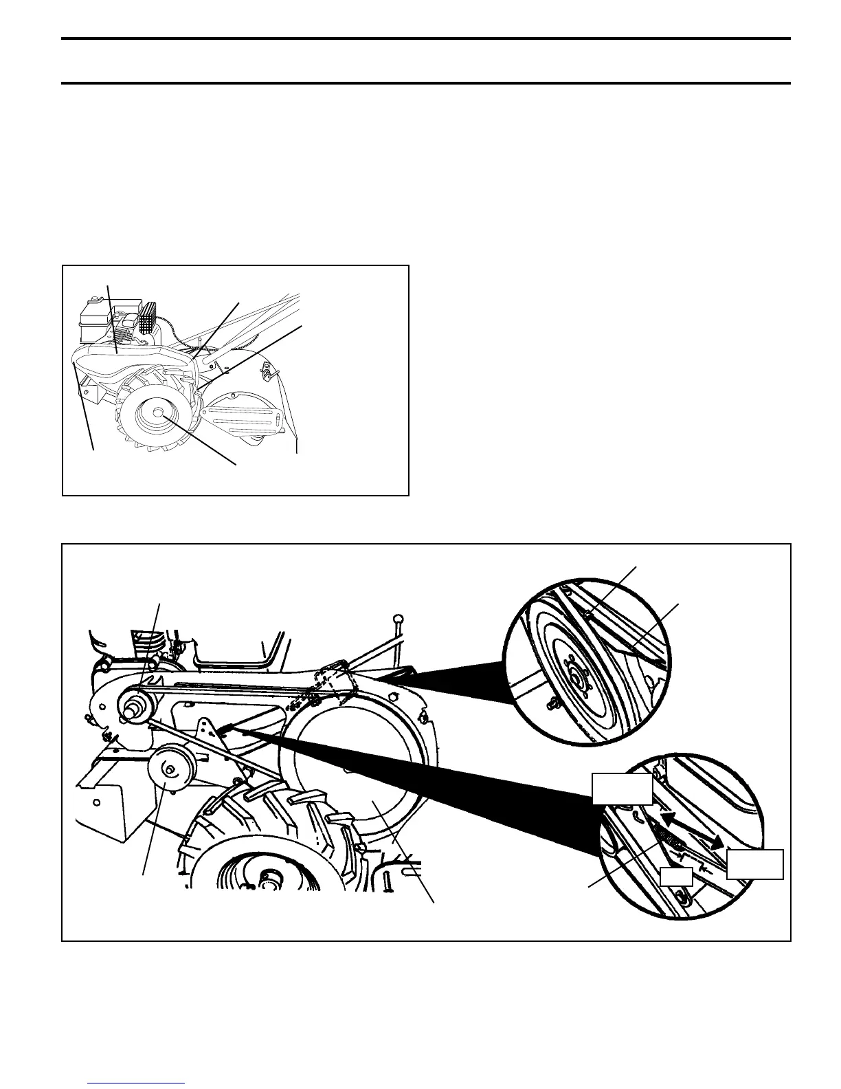 pin from left wheel. Pull wheel out from tiller about 1 inch