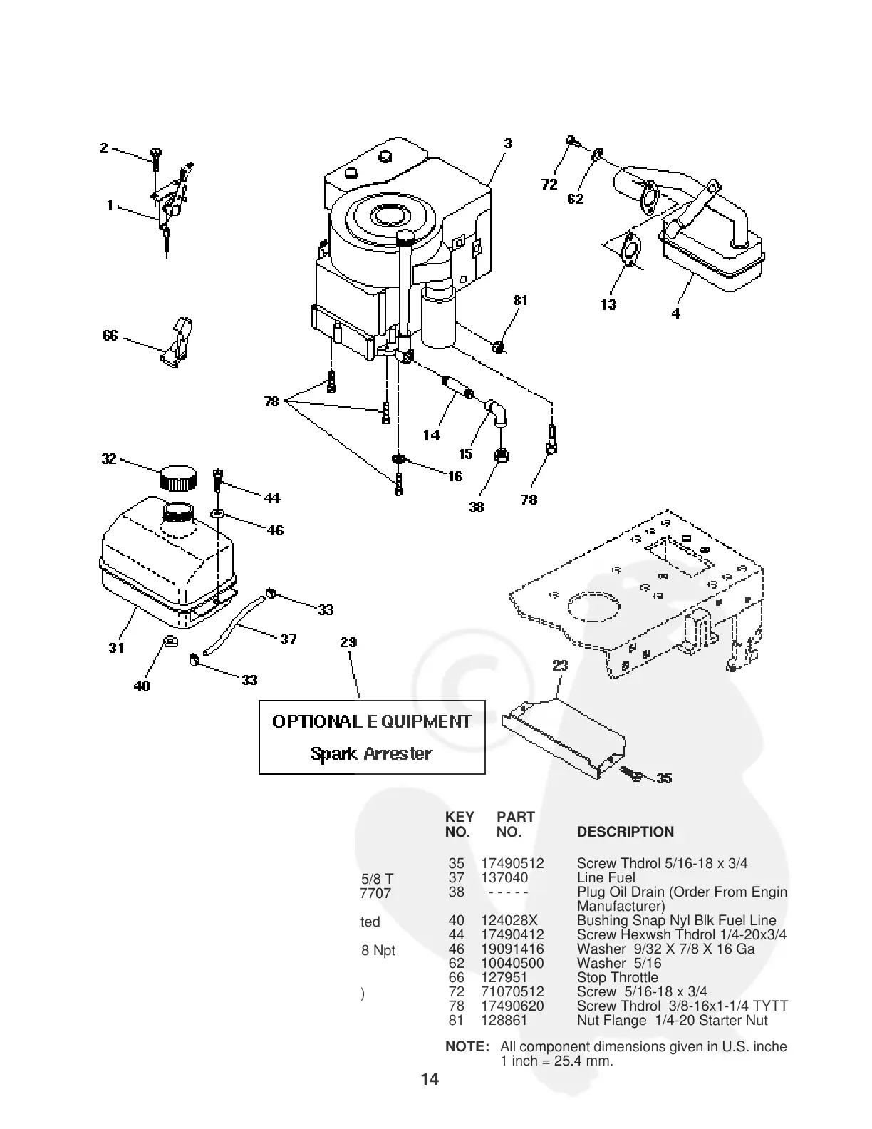 NOTE: All component dimensions given in U.S. inches.