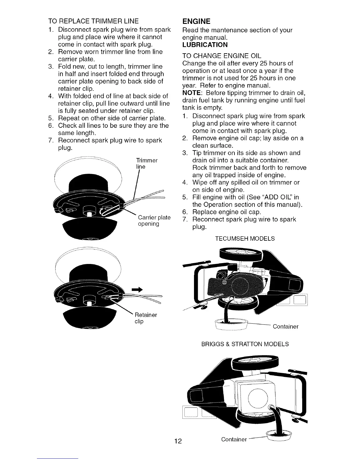 NOTE: Before tipping trimmer to drain oil,