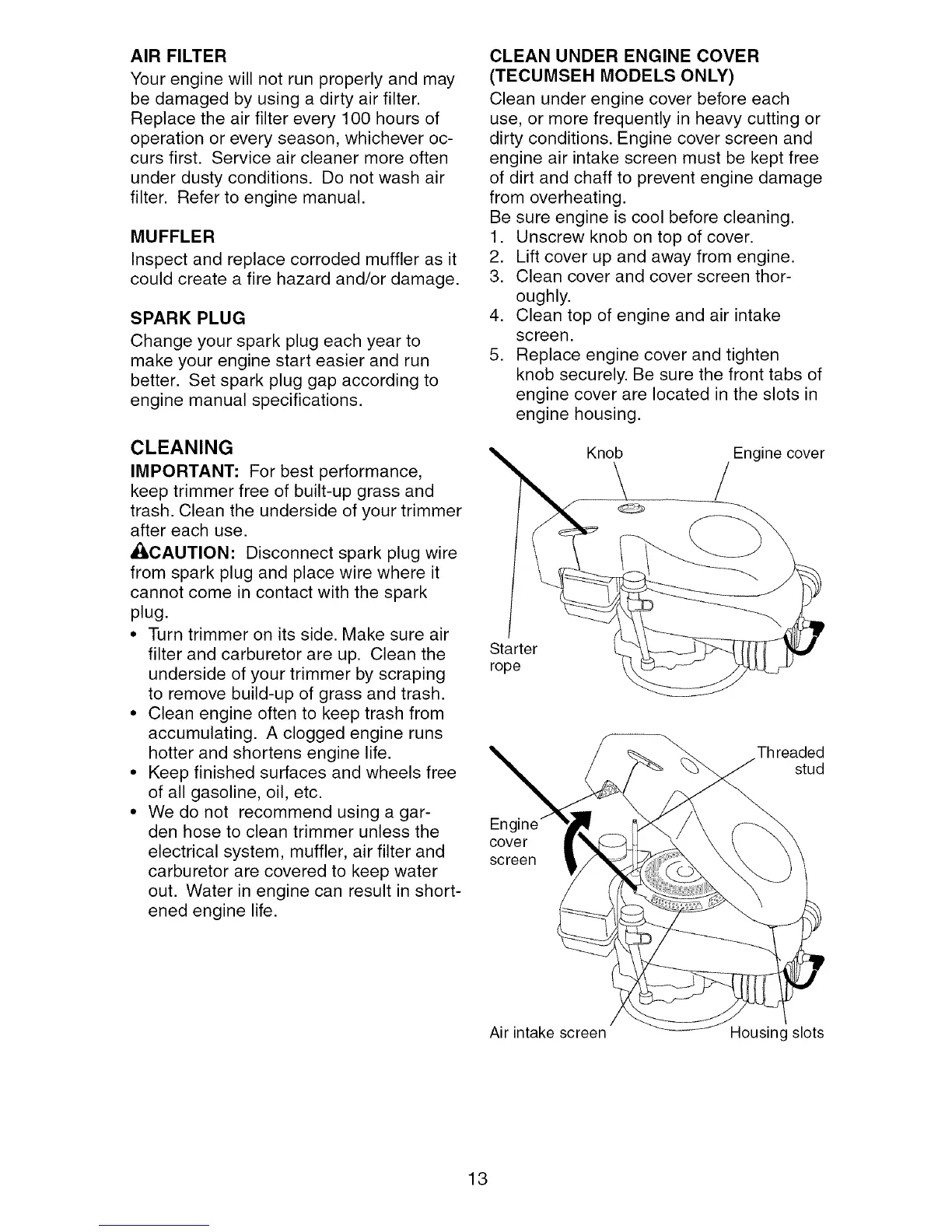 • Clean engine often to keep trash from