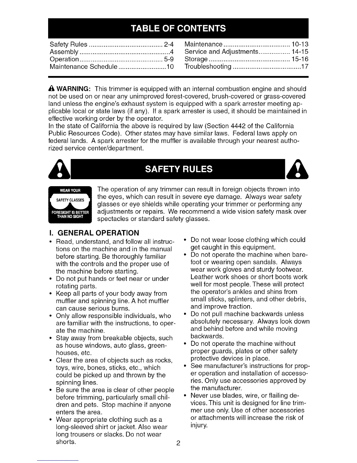 A WARNING: This trimmer is equipped with an internal combustion engine and should