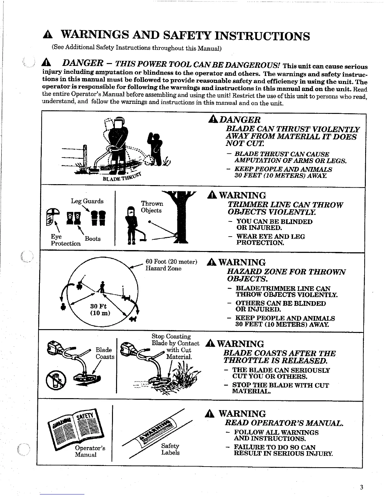 Weed Eater XT 85T - OPERATORS MANUAL; WARNINGS AND SAFETY INSTRUCTIONS
