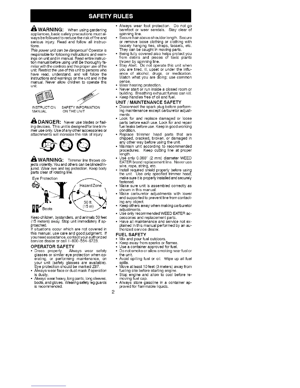 the unit. Use only specked trimmer head;