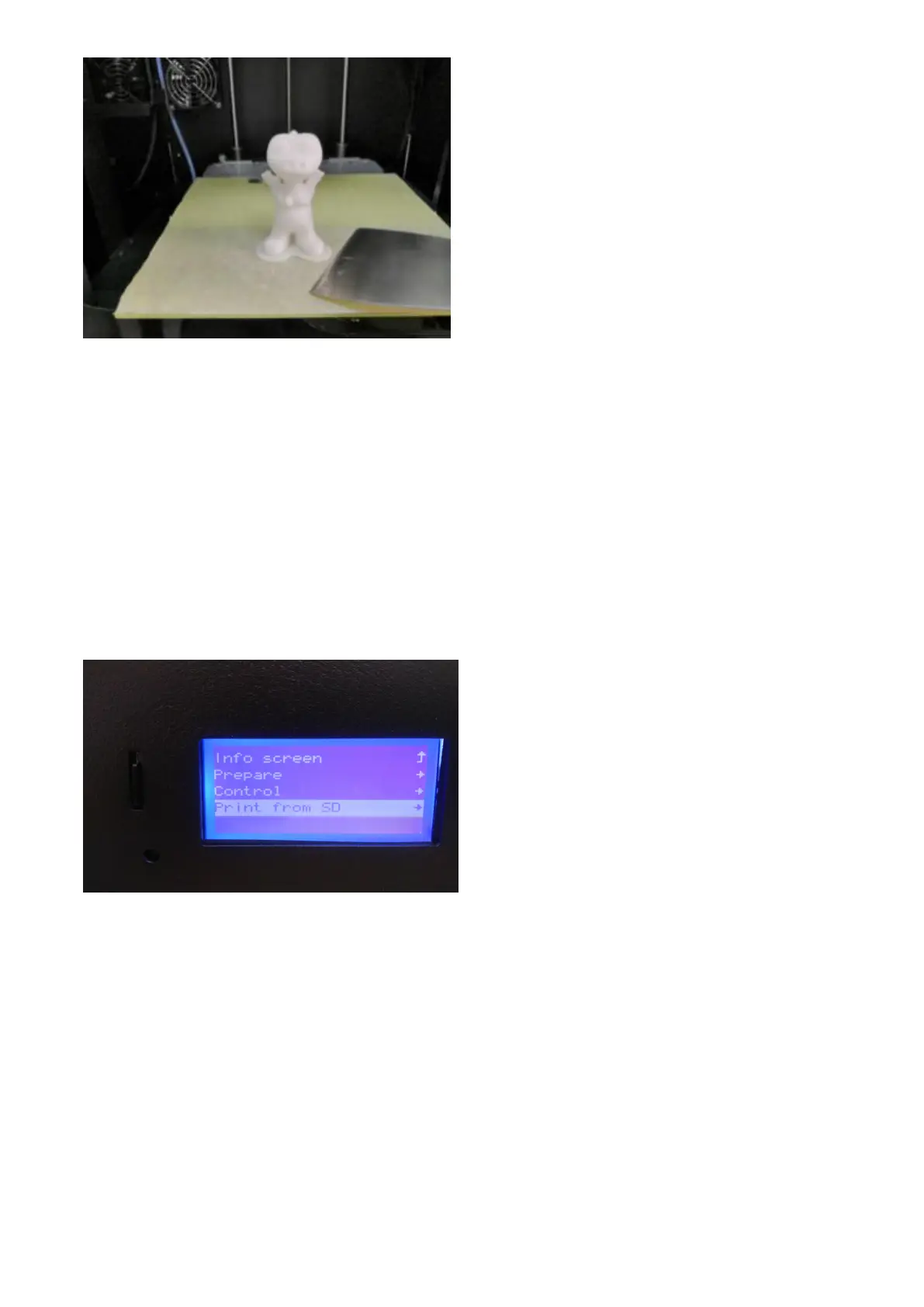 The control panel of the 3D printer consists of a LCD display and a knob. When it is not connected to