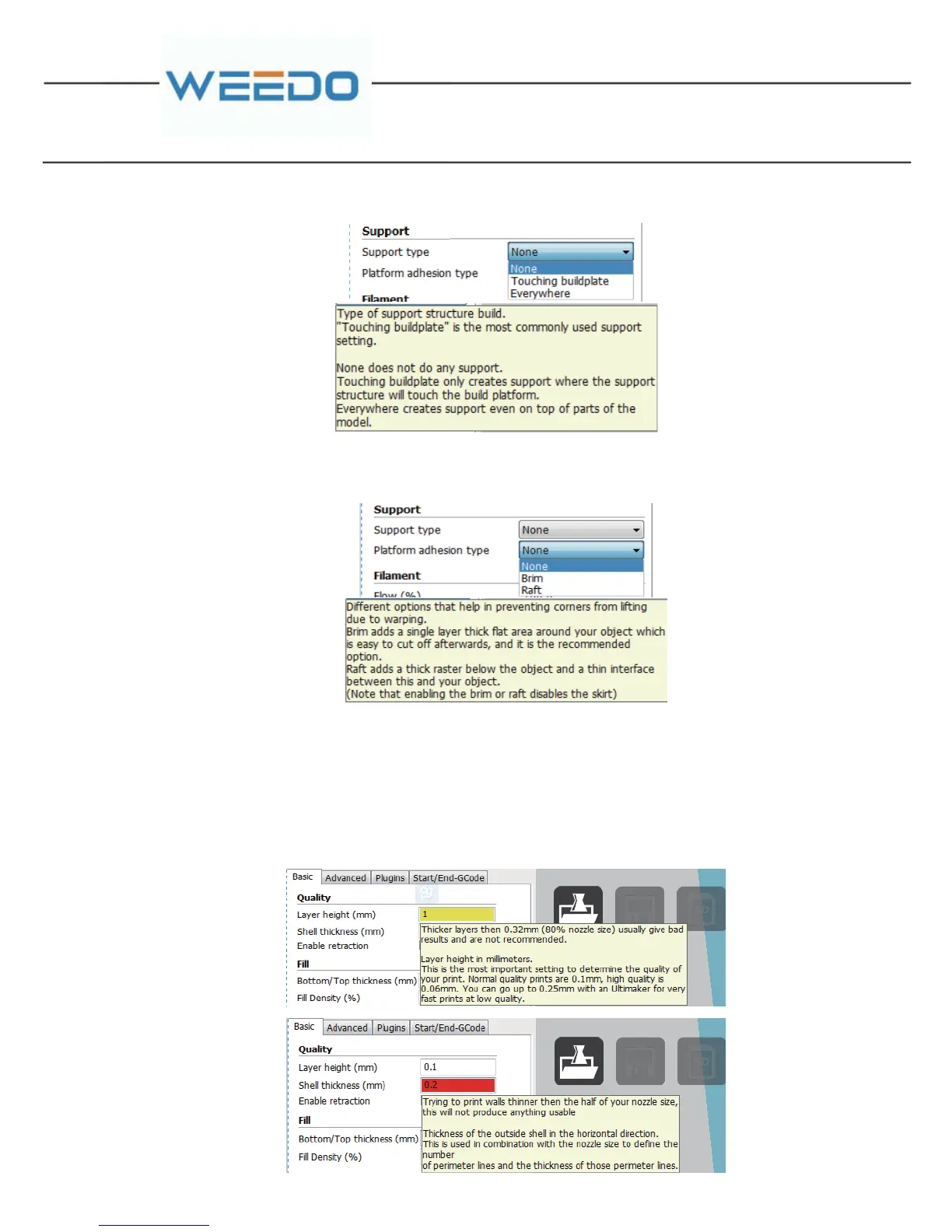 used pad, “Brim” refers to edge pad, “Raft” refers to bottom gridding pad.