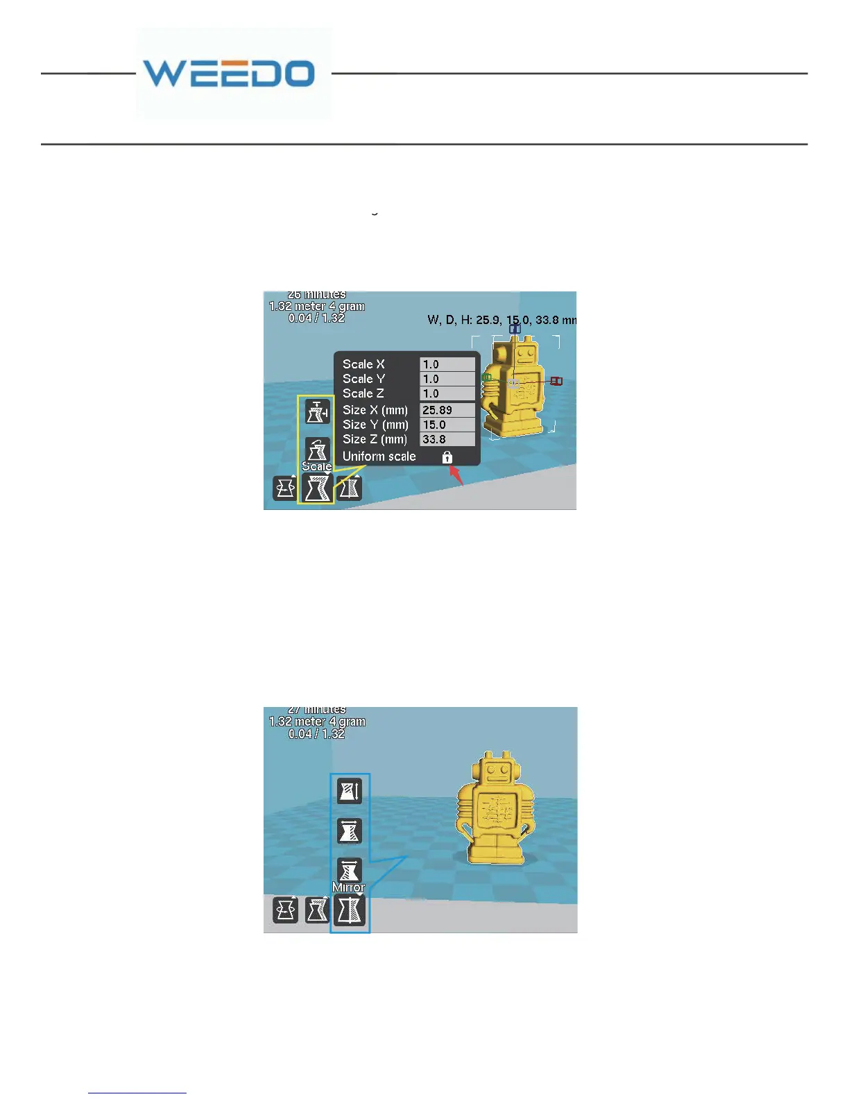 zoom scale and model size dialogue window. In the item of “Scale”, it inputs the