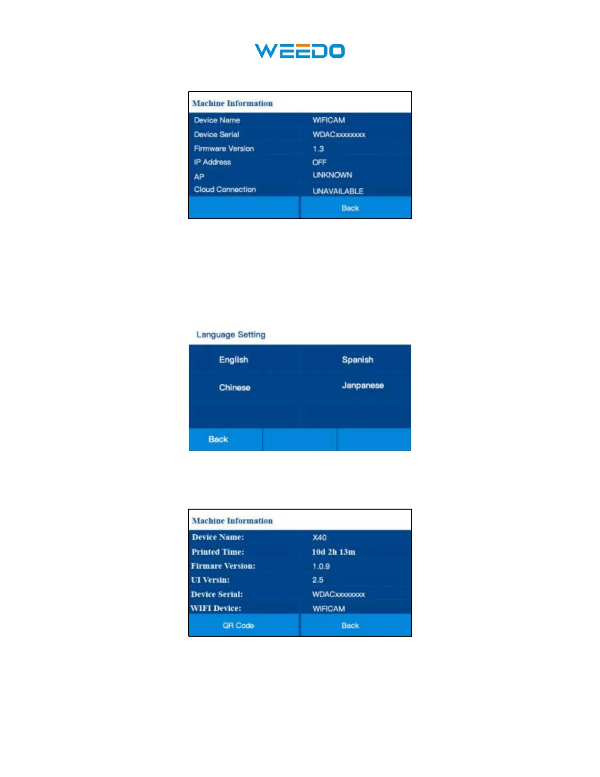 Update: When there is a new version of WIFI firmware, Click update, it will begin