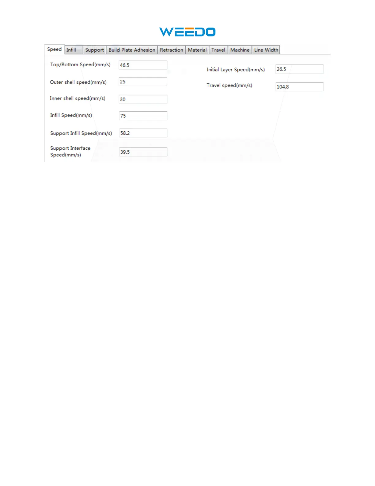 • Support Interface Speed (mm/s): Sets the printing speed of the top and bottom surfaces