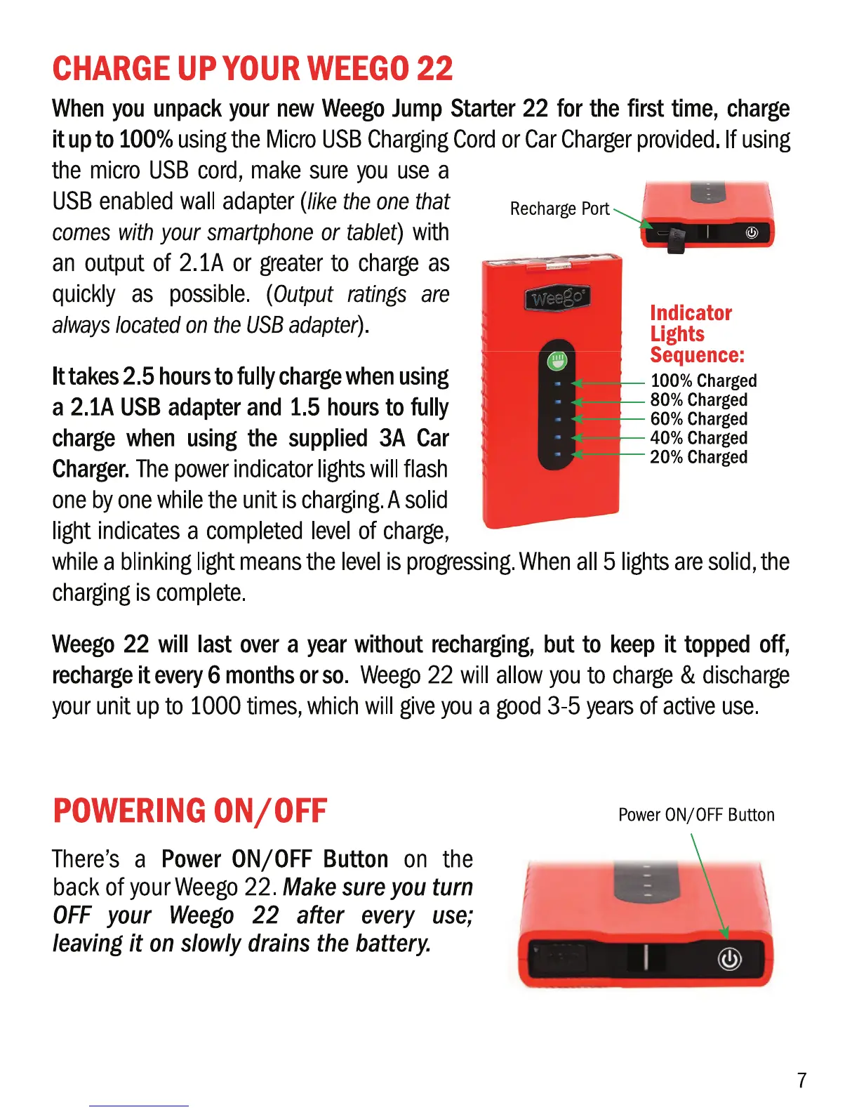 Weego 22 - Charging Your Weego 22; Powering the Weego 22 On and Off