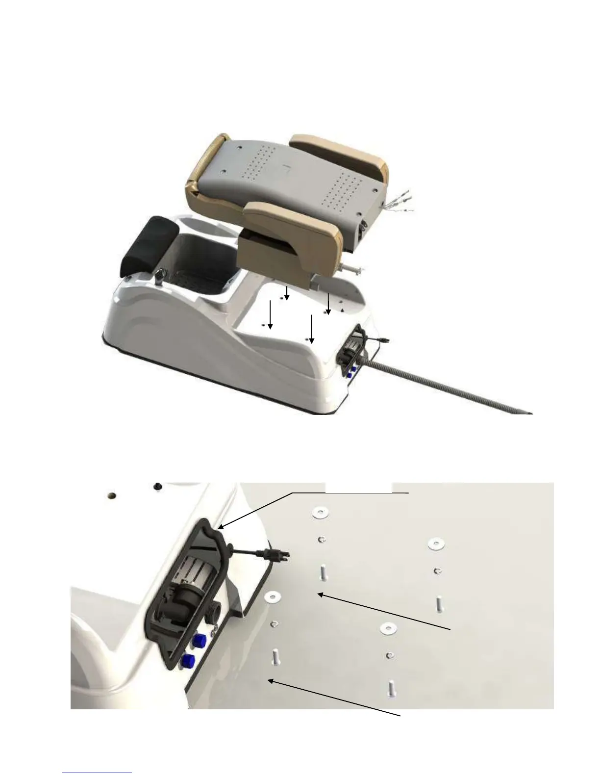 4Put the base of massage chair on the foot SPA. Use Allen key to screw the 4PCS* M10 inner hexagon screws together with