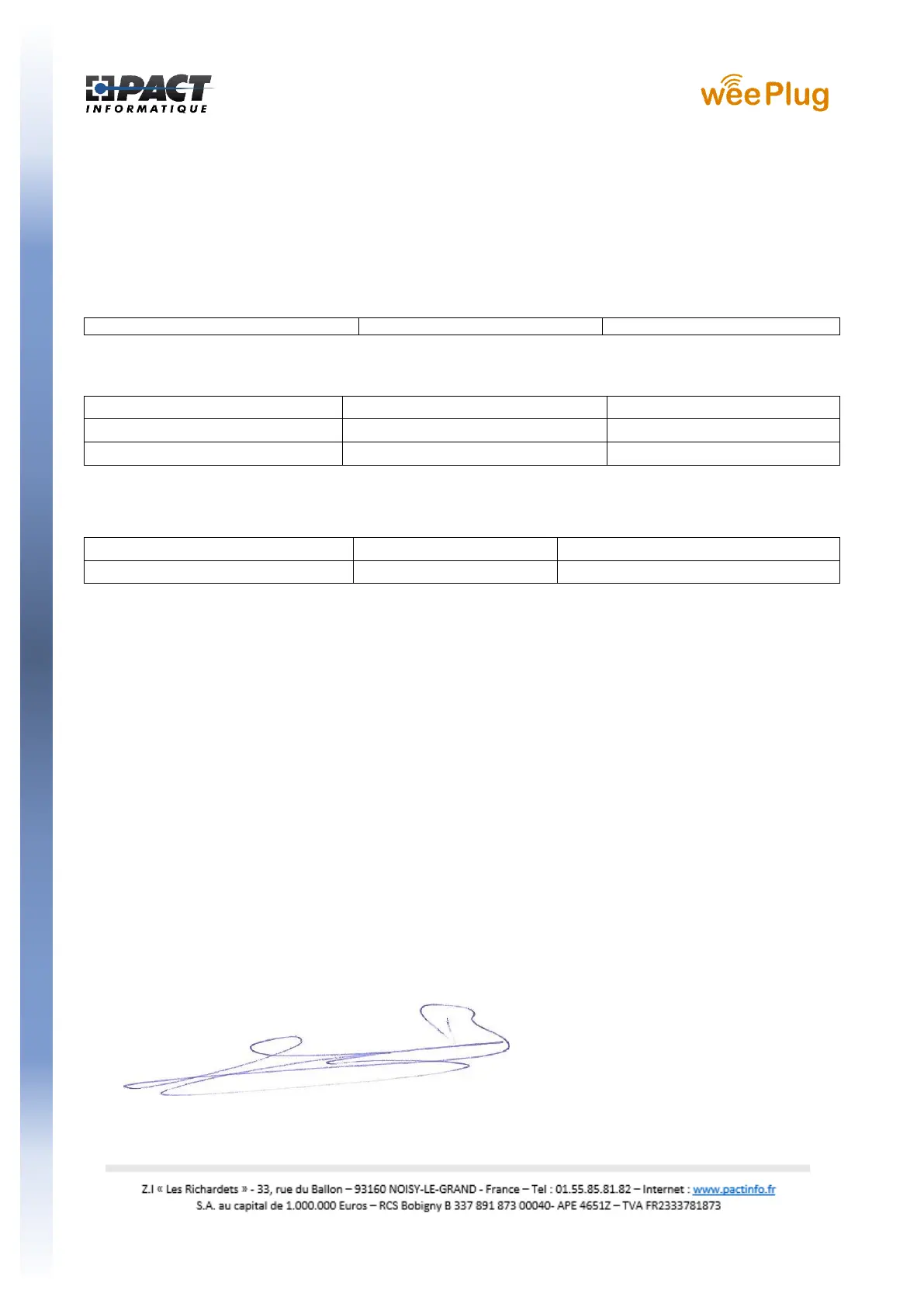 Nous soussigné PACT INFORMATIQUE déclarons par la présente que le produit.