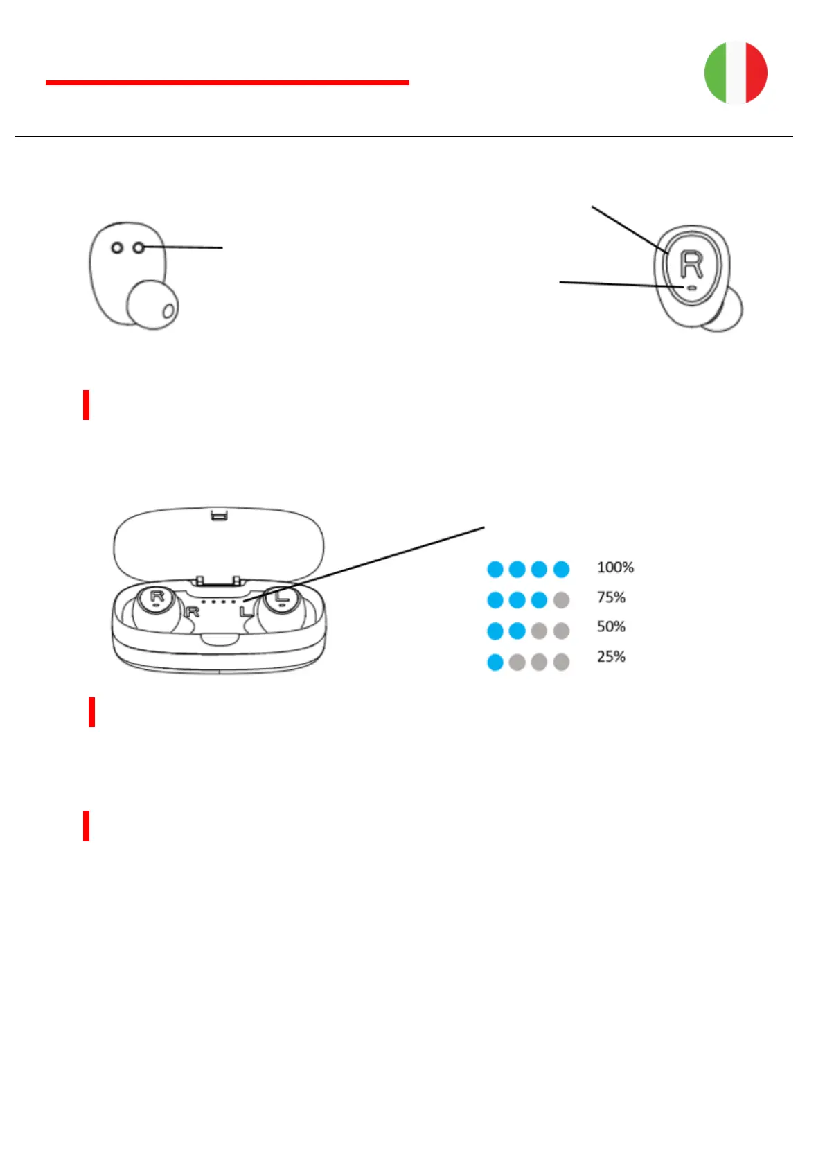 Aprire la custodia di ricarica e inserire gli auricolari. Assicurarsi che i sensori di ricarica siano a contatto tra loro.