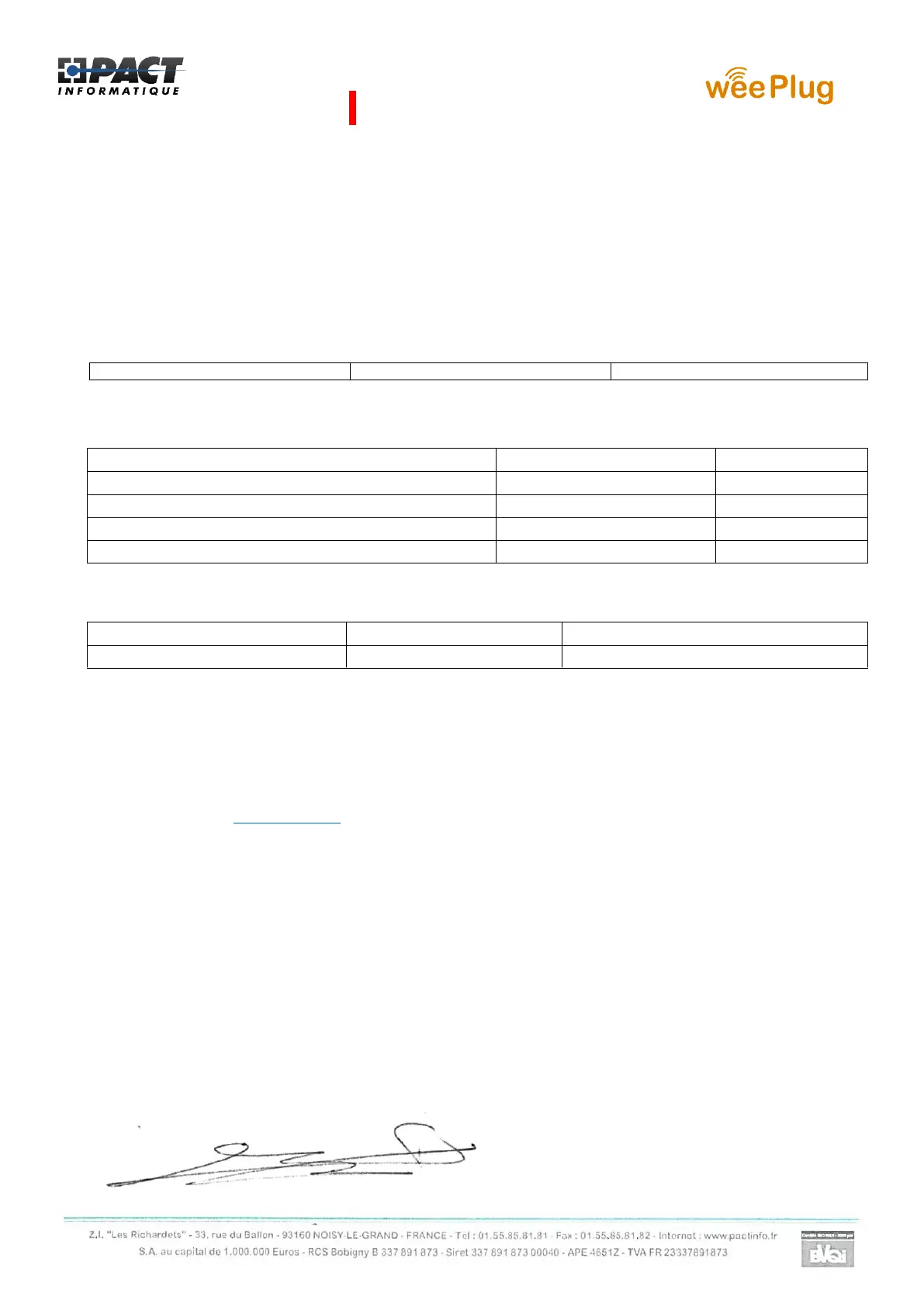 Nous soussigné PACT INFORMATIQUE déclarons par la présente que le produit.