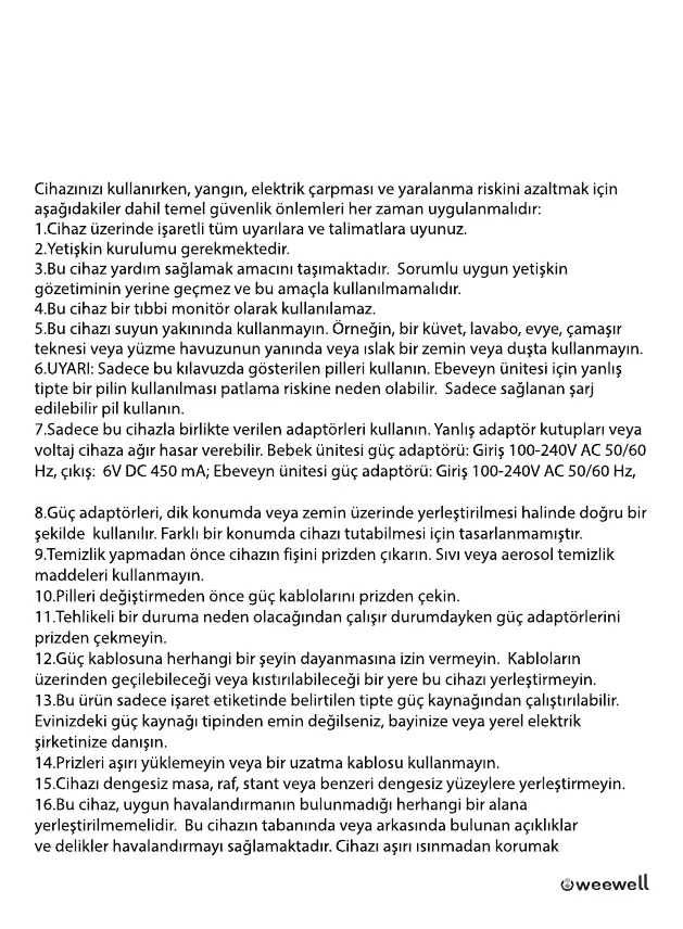 Üstün teknoloji ürünü Weewell dijital bebek telsizini satın aldınız. Lütfen kullanmadan