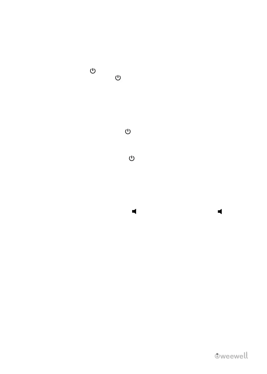 • To turn the baby unt on/off, press and hold the button for 3 seconds. The lght for the power