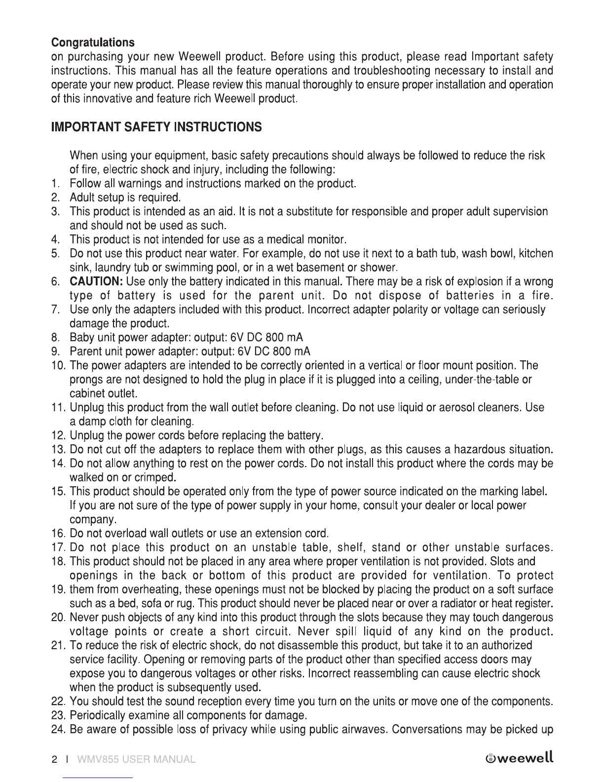 weewell WMV855 - Safety and Warnings; Important Safety Instructions