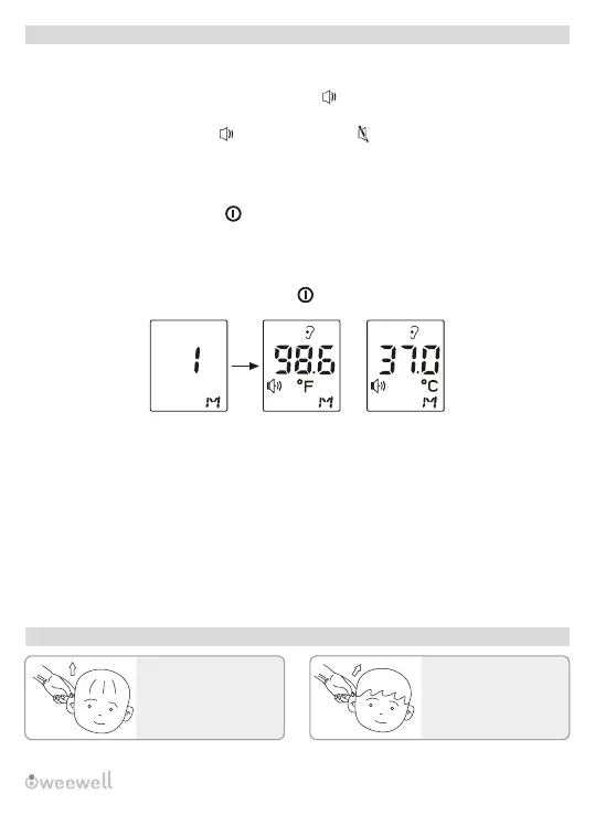 Fahrenheit degree (°F) and Celsius degree (°C). Wait for 8 seconds to turn on the
