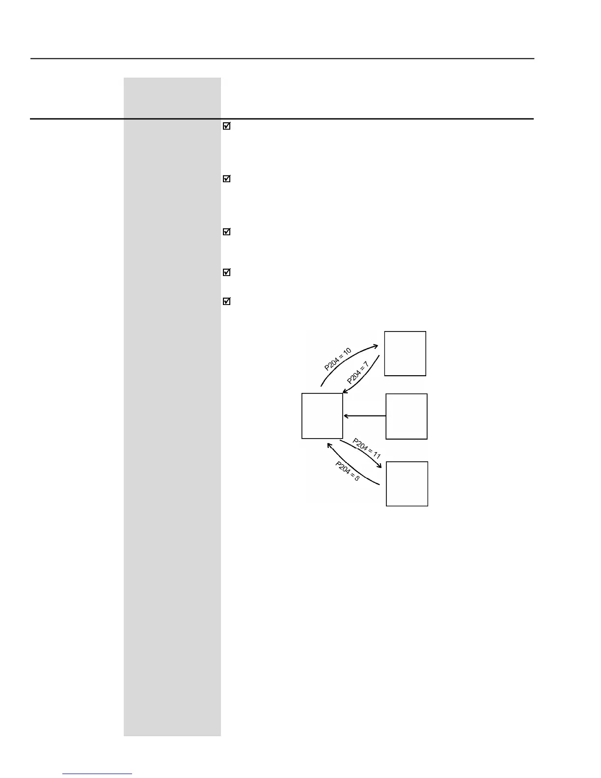 The options P204 = 5, 6, 7, 8, 10 and 11 are disables when P309