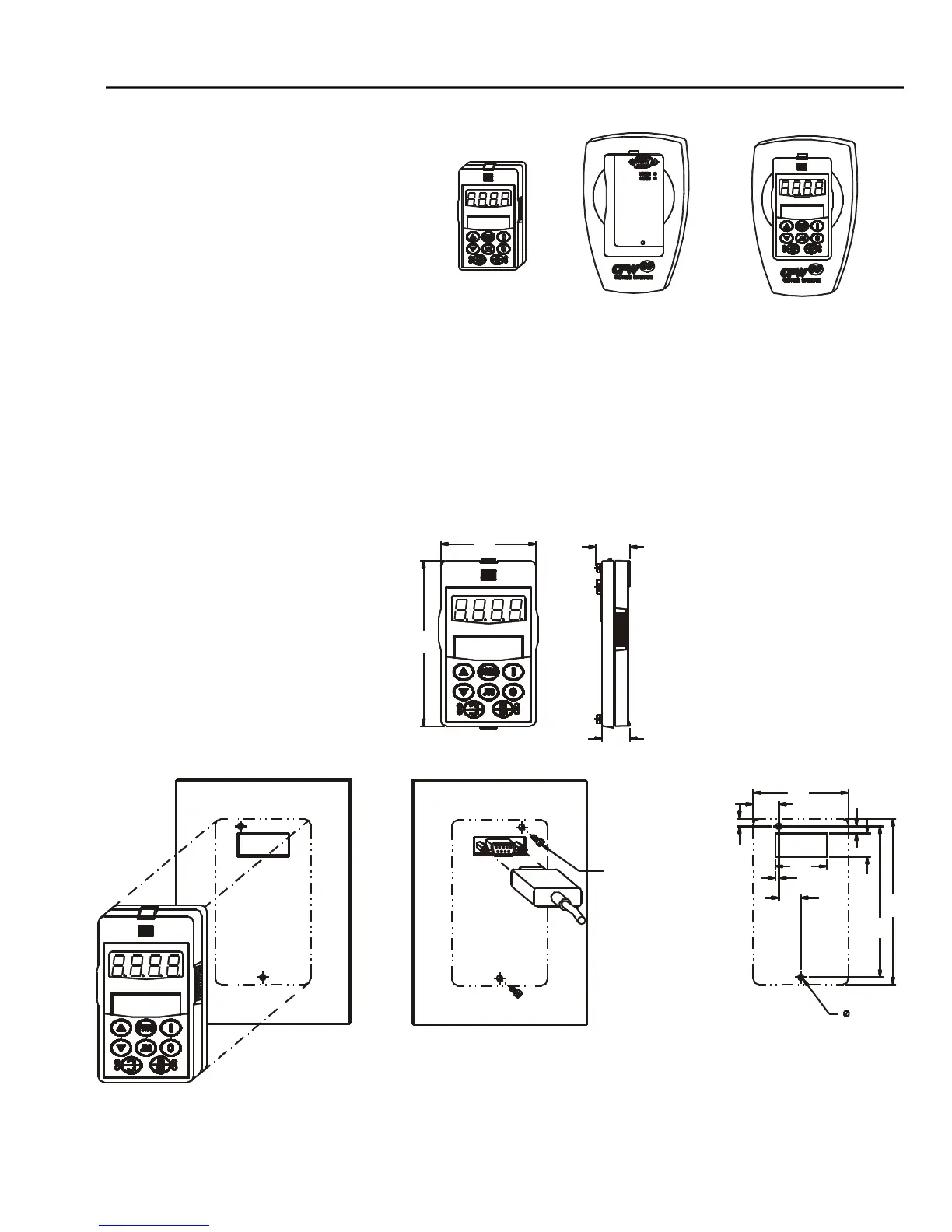 a) Dimensions of the HMI CFW09 LED/LCD with NEMA 5-IP51 degree of protection.