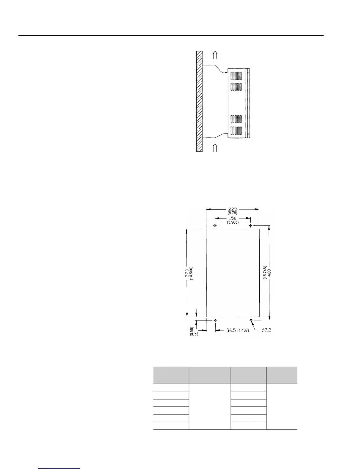 - Cutout dimensions in air duct - Dimensions mm (inch)