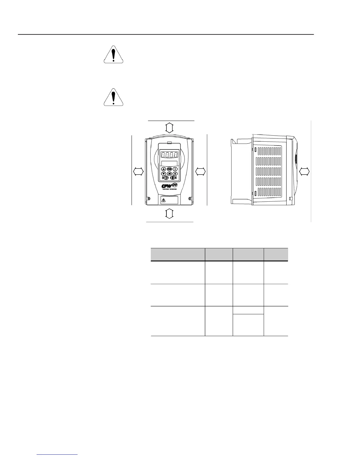 When inverters are installed side by side, maintain the minimum