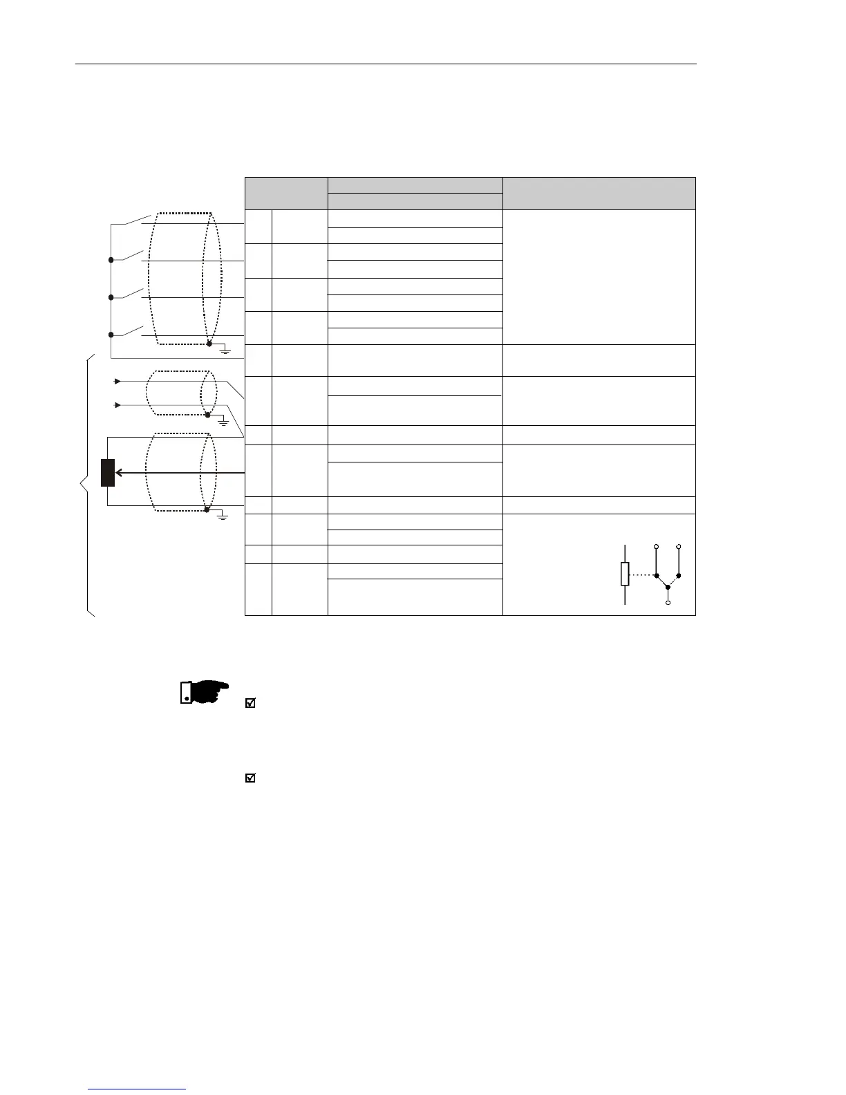 The signal (analog input) and control connections (digital inputs and