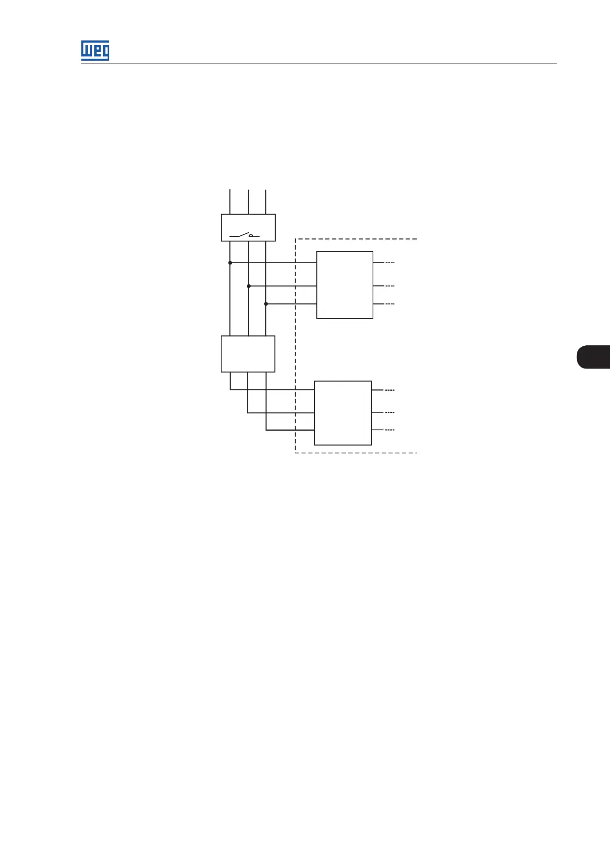 The CFW-11 RB monitors the line voltage (A, B and C) at the converter input with two transformers and asynchronism