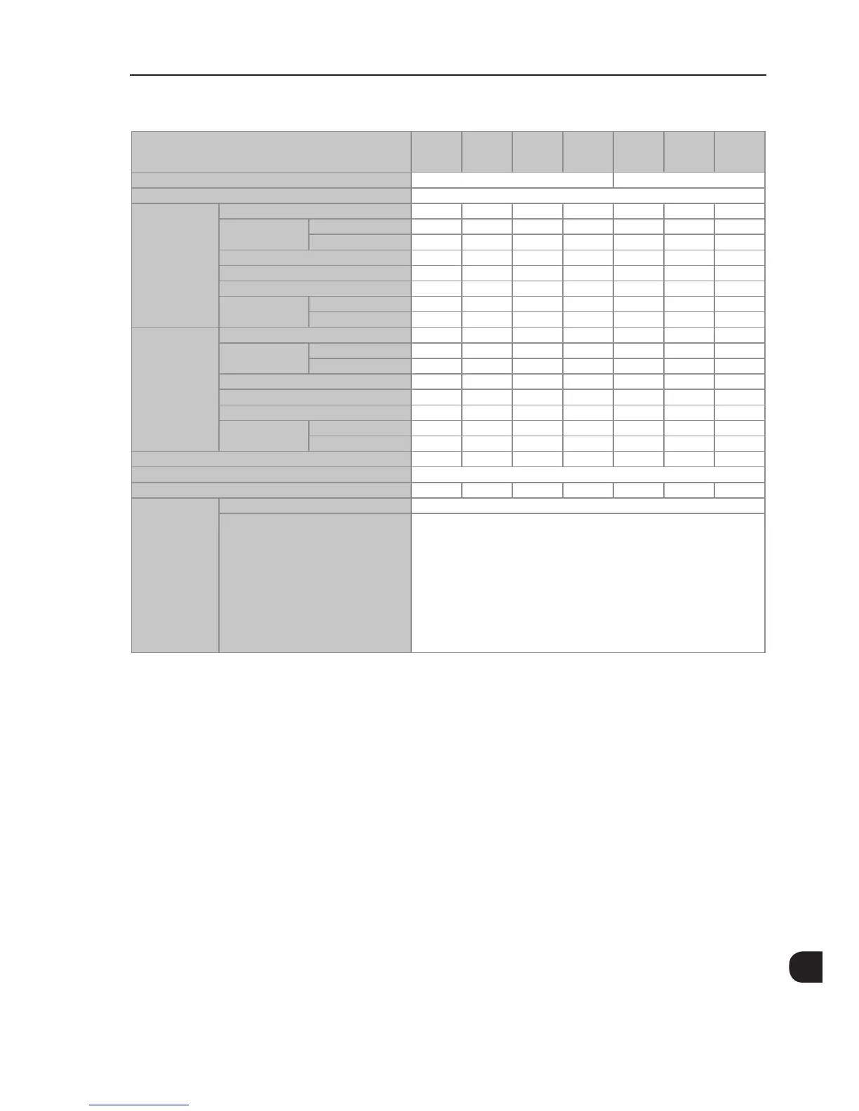 Table 8.3 - Technical specications of the CFW-11 inverter series frame sizes F and G models at 5 kHz switching frequency