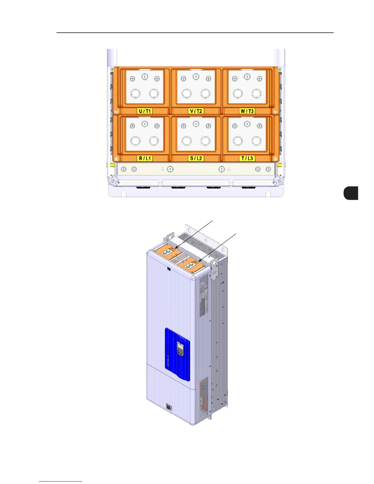 (a) Frame size F power terminals and grounding points