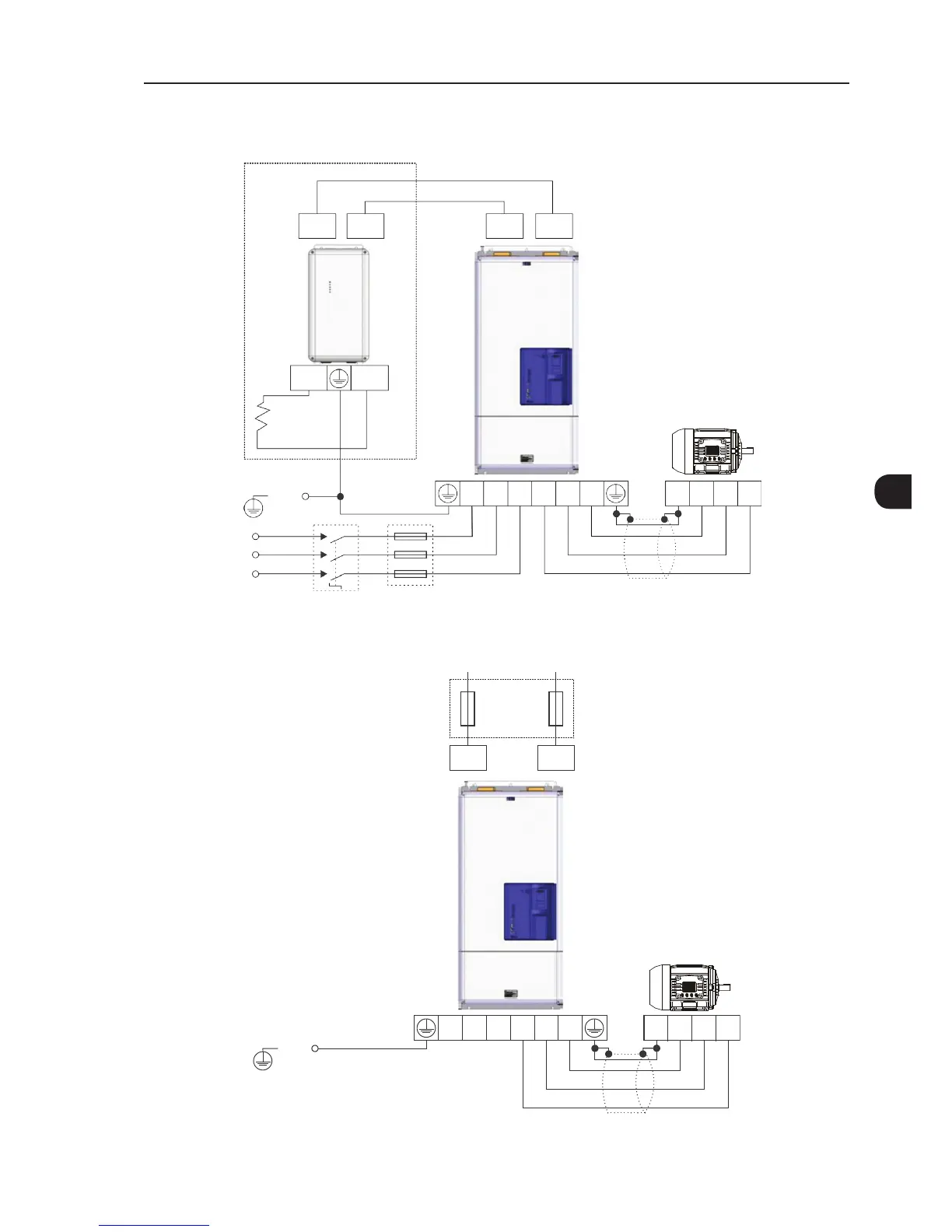 Figure 3.9 - (a) and (b) - Power and grounding connections - frame sizes F and G