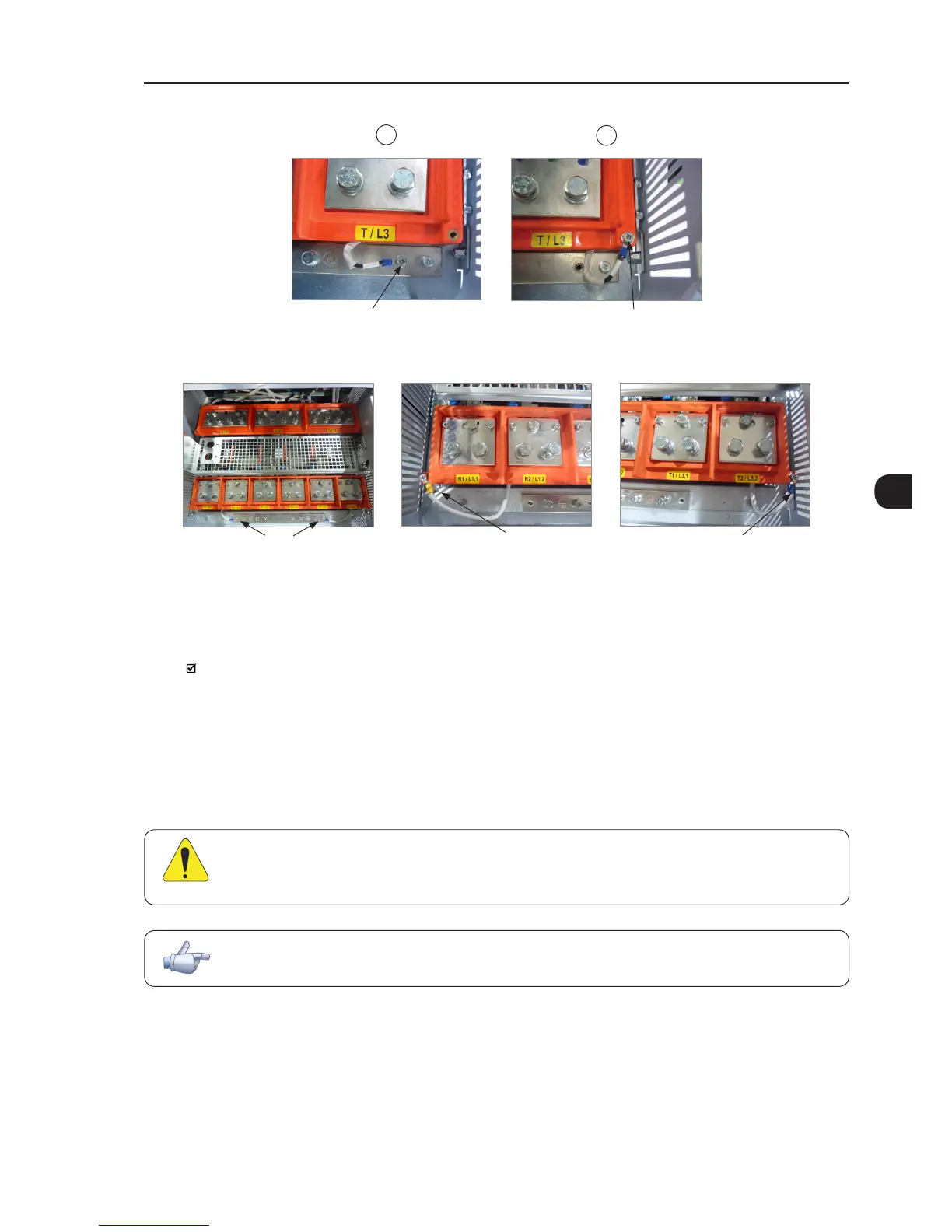 Figure 3.12 - Grounding connections – location and procedure to adapt to the IT or delta-grounded networks – frame size H