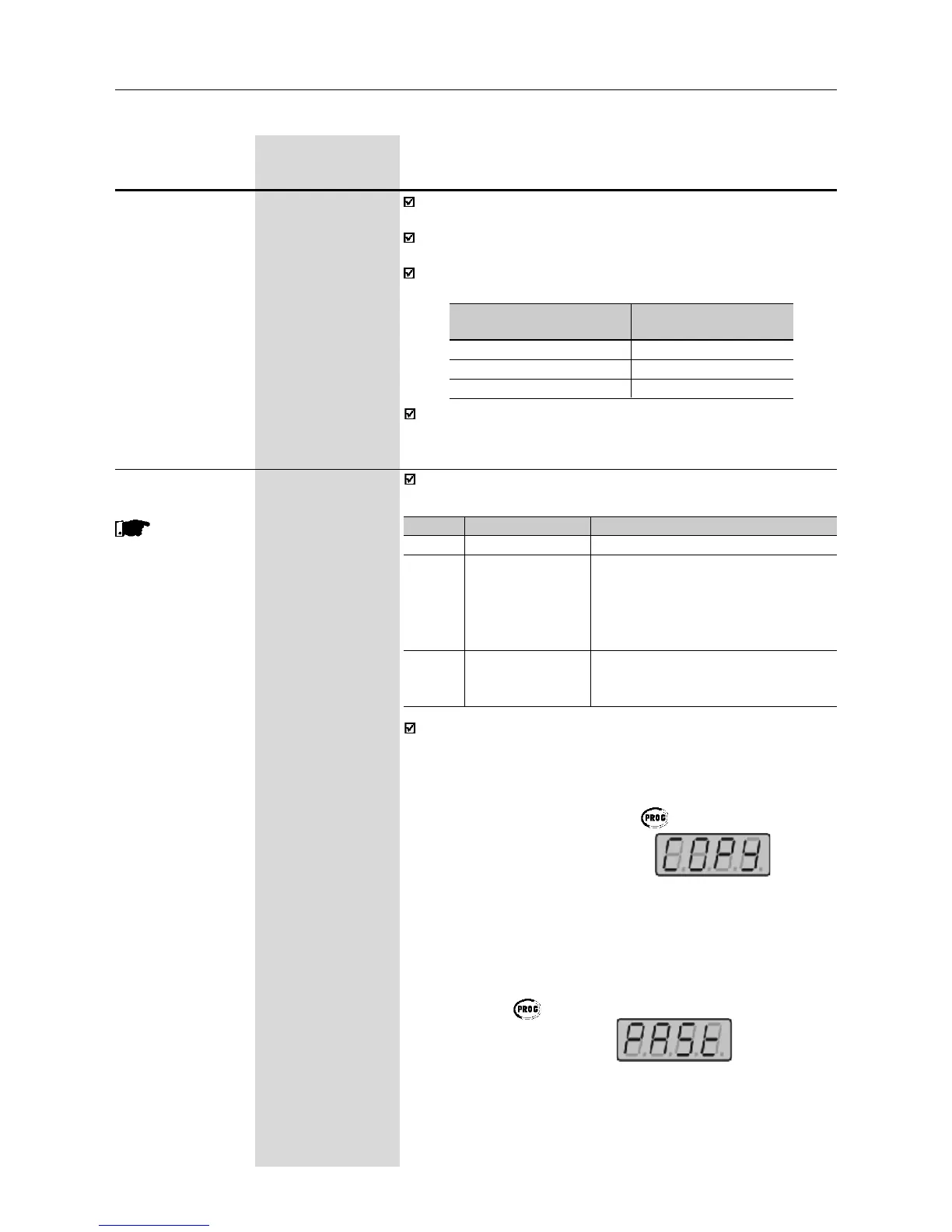 2. Set P215=1 (copy) to transfer the parameter values from the