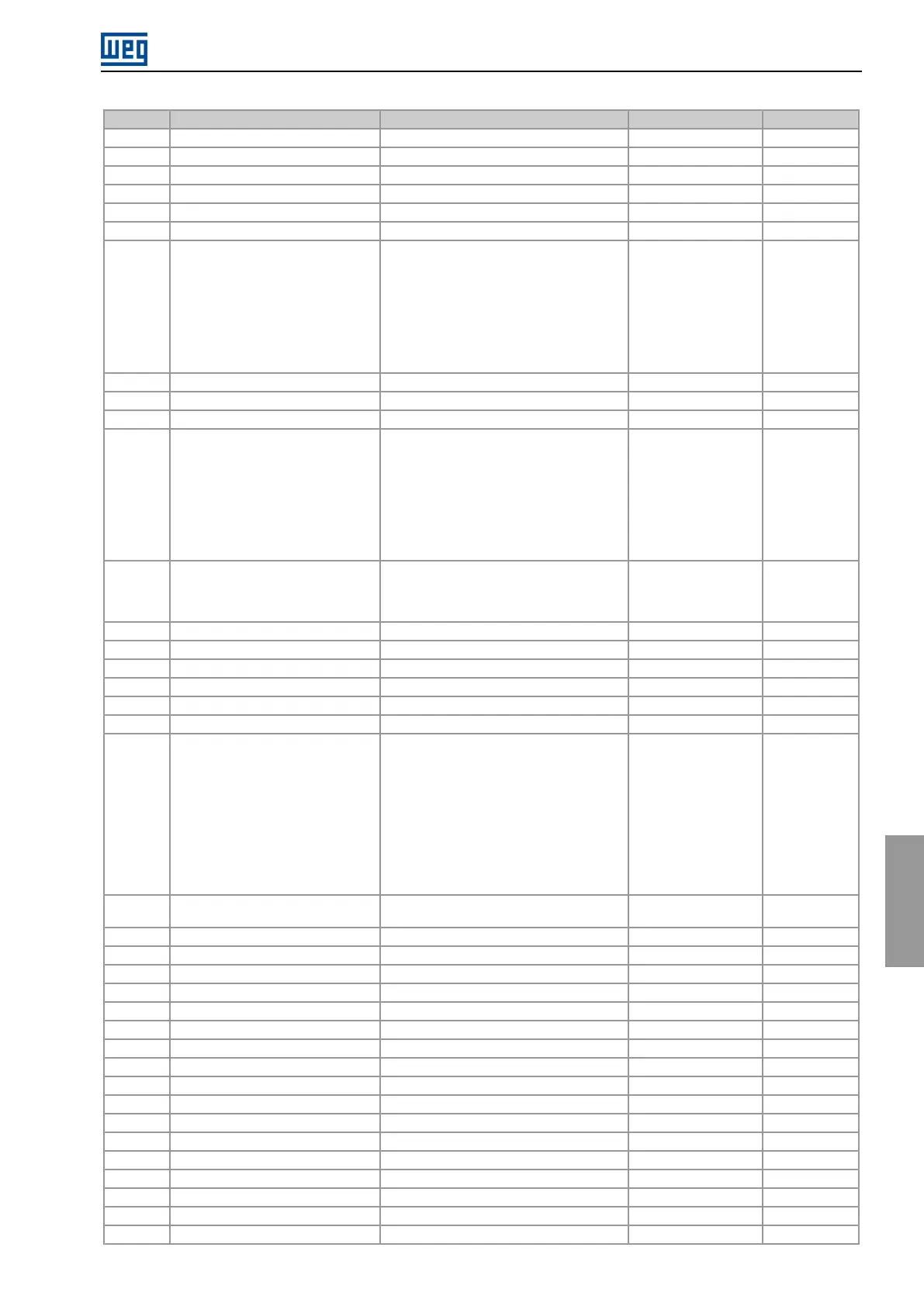 Parâm. Descrição Faixa de Valores Ajuste de Fábrica Propr.