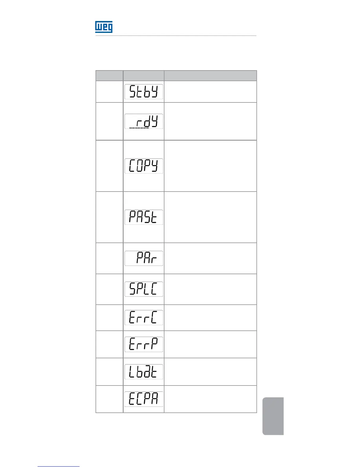 tabela de parâmetros do inversor.