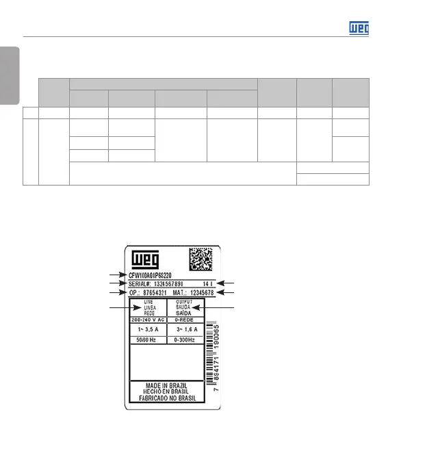 Figure 2.2: Description of the CFW100 identification label