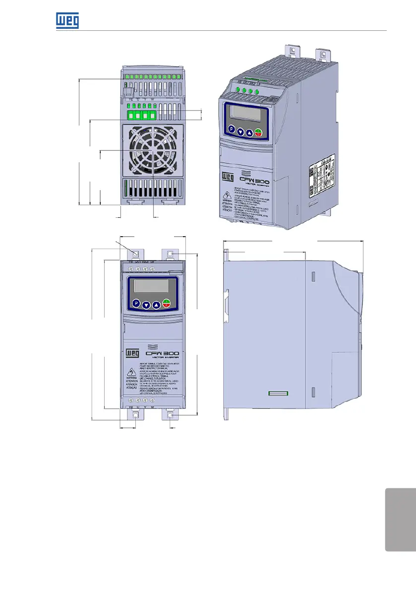 Figura B4: Dimenes do inversor em mm [in] - mecânica A