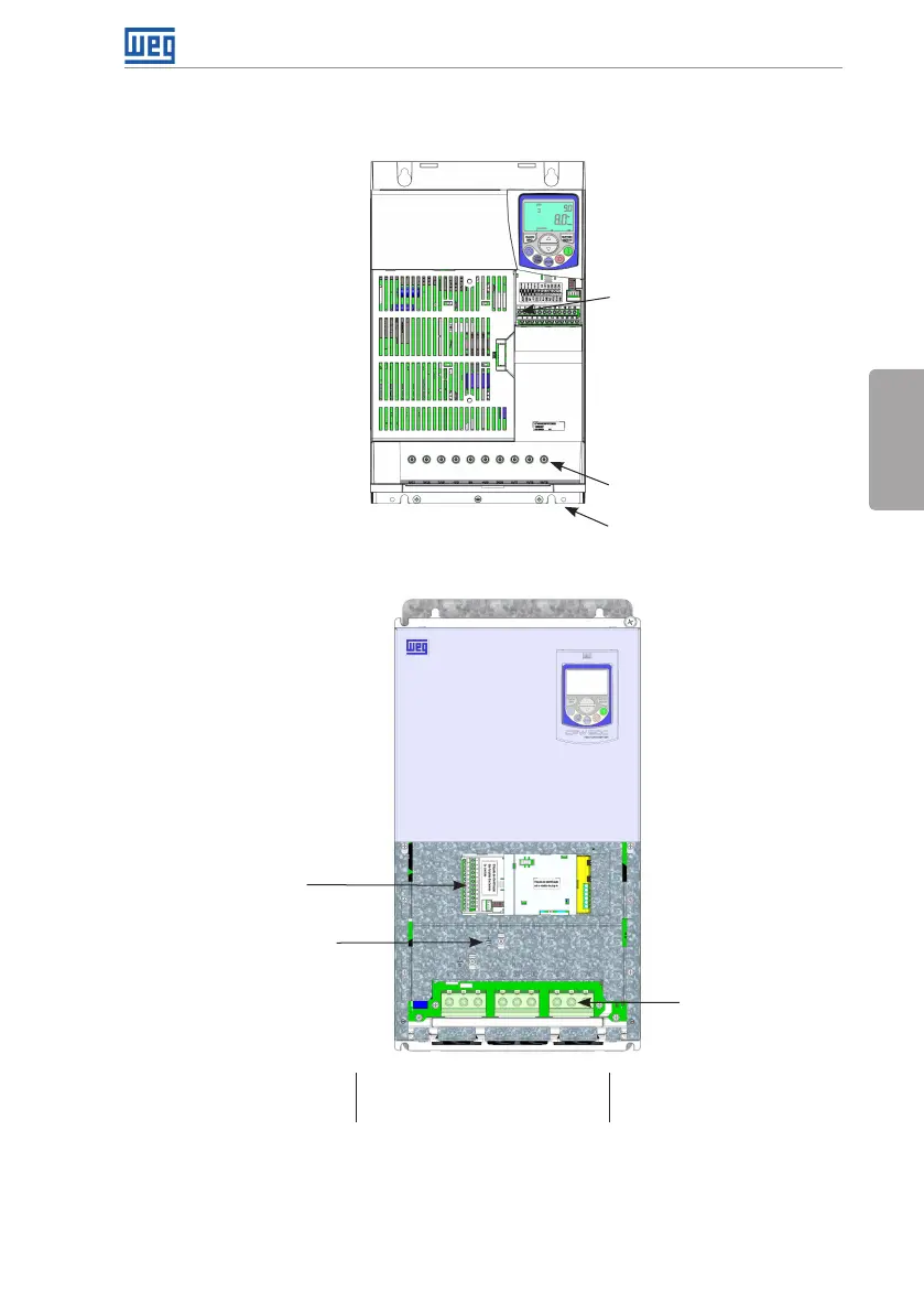 Figura A.3: Puntos de aterramiento y localizacn de los bornes (convertidor sin la tapa frontal)
